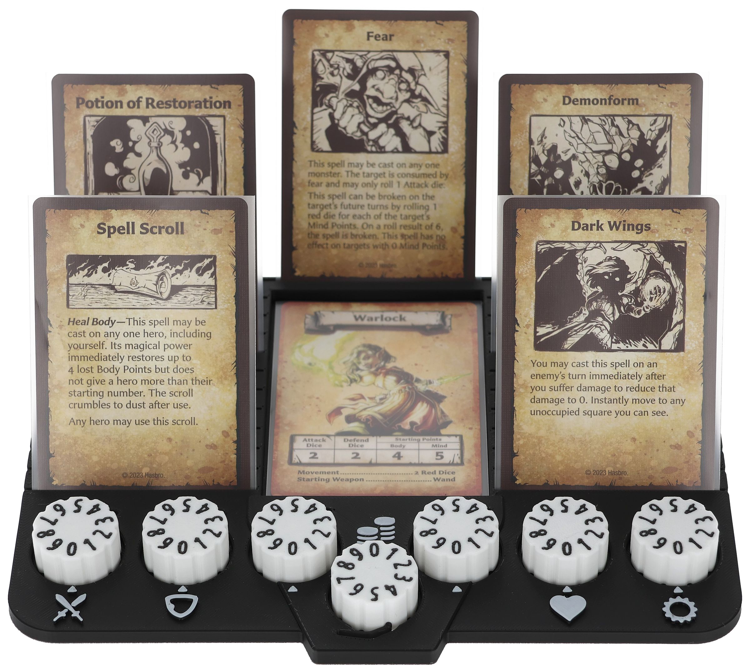 - The plastic Hero Dashboard simplifies character management and provides a better overview on the tabletop.
