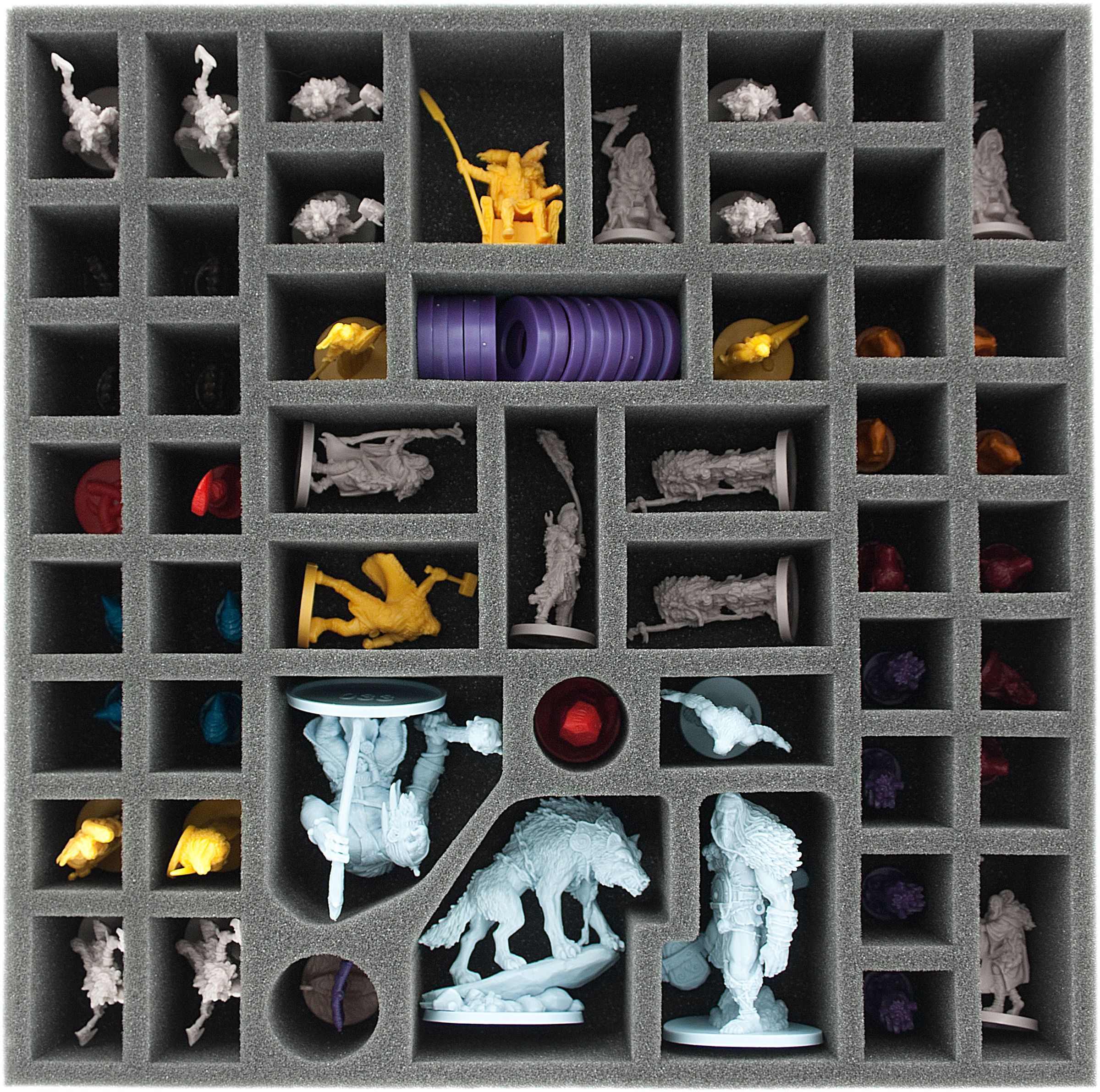 We have packed the set with a total of 6 foam trays and 2 Storage Boxes so that you can store all miniatures and tokens, as well as all the game material.