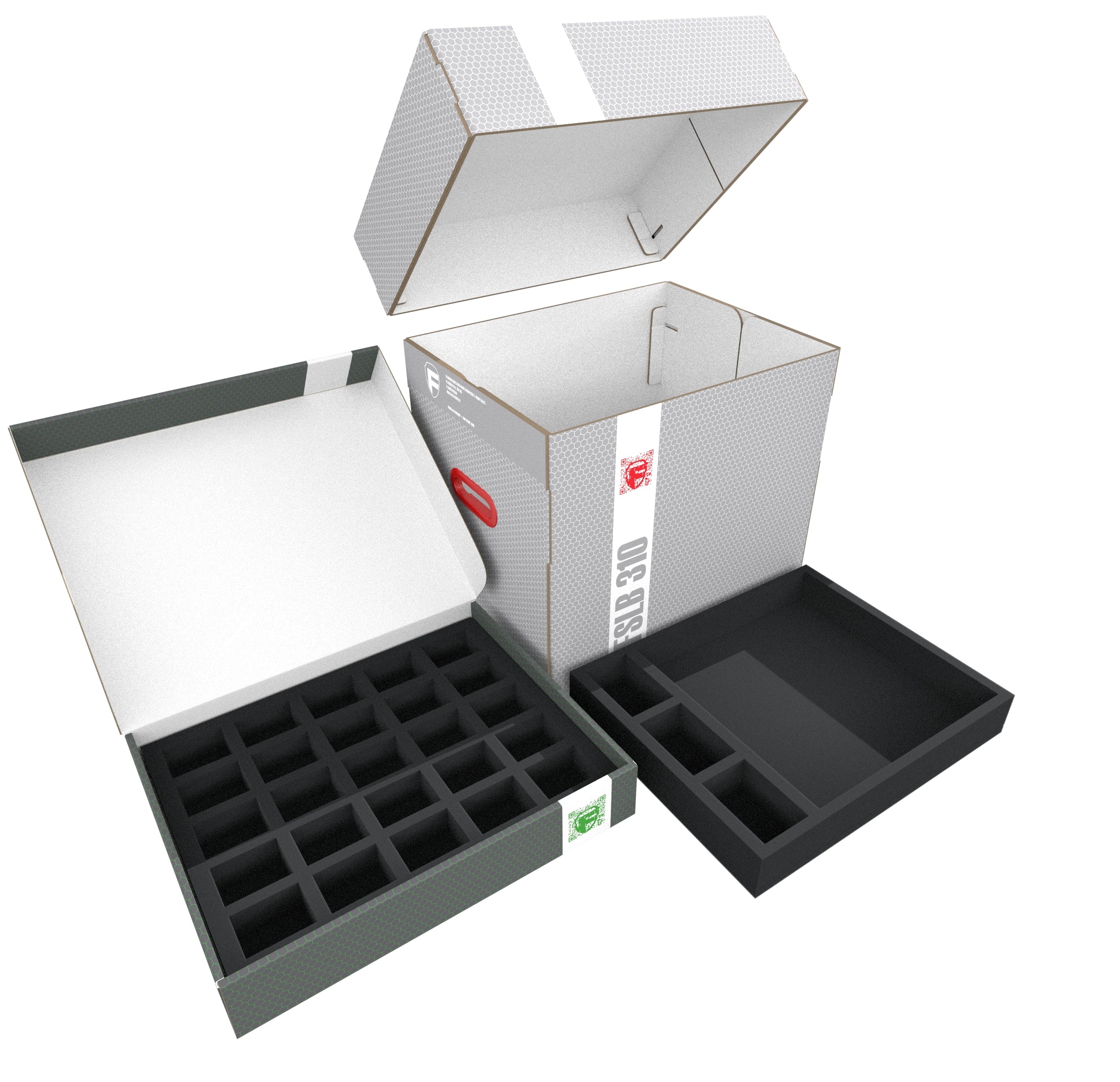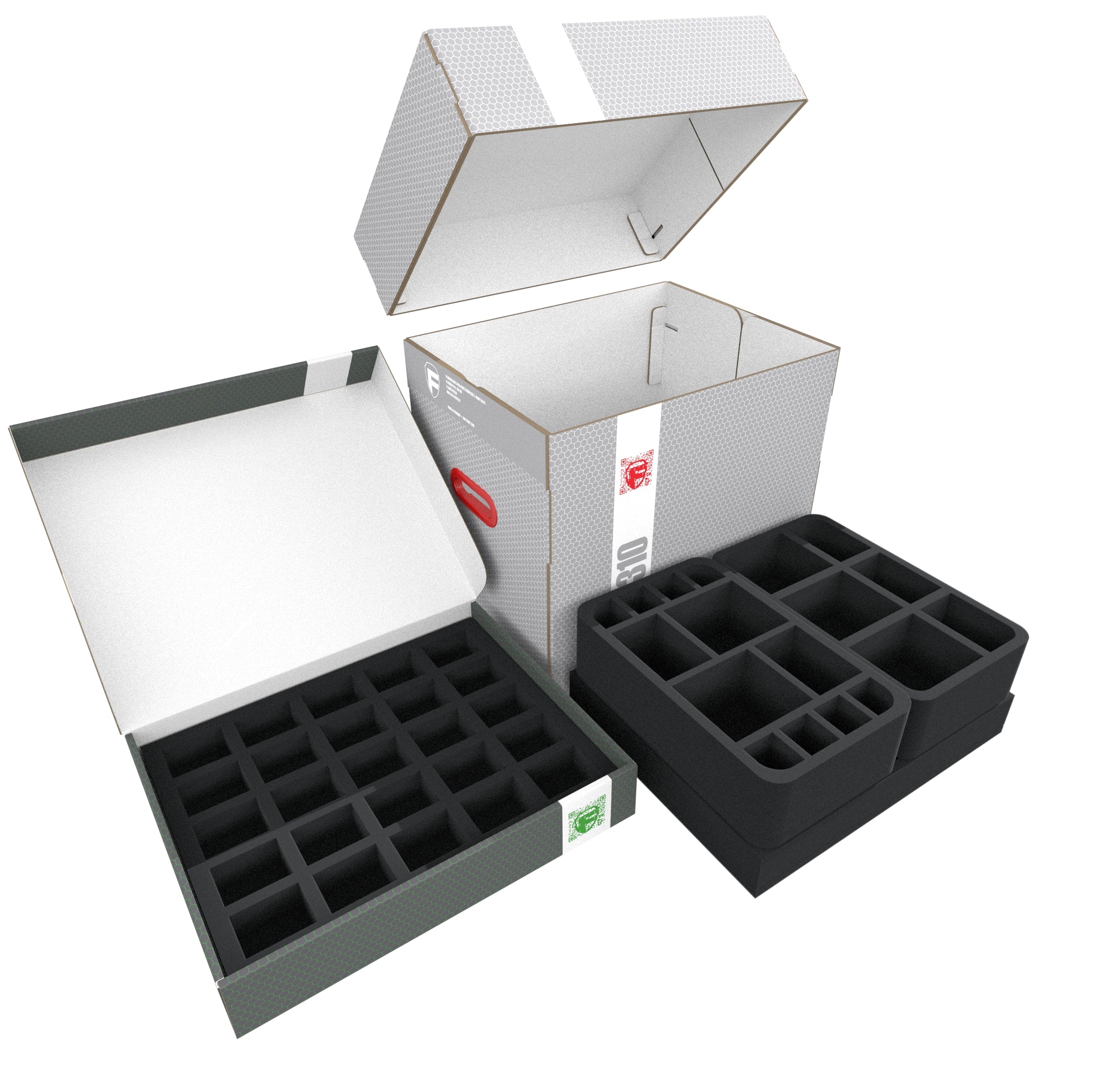 • 1 Full-Size foam tray with 4 compartments for bulky and heavy game material such as game board pieces + small game material (FS050I031BO)
