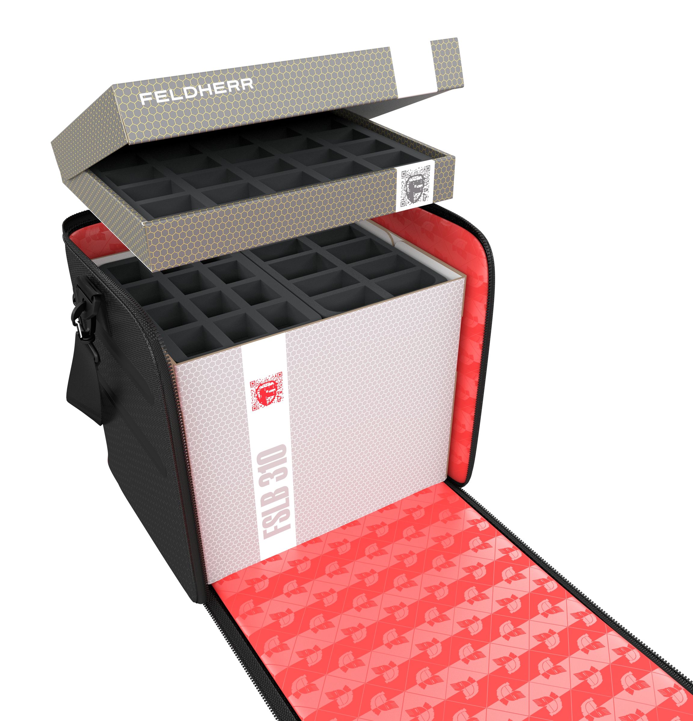 Don't worry. The two Storage Boxes, FSLB250 and FSLB040, with custom Feldherr foam trays, are the ideal accompaniment and help you to store each miniature safely and to sort the entire game material neatly. And with the comfortable GENERAL 370 carrying bag you'll be ready to face any danger and ride into the sunset as a true hero.