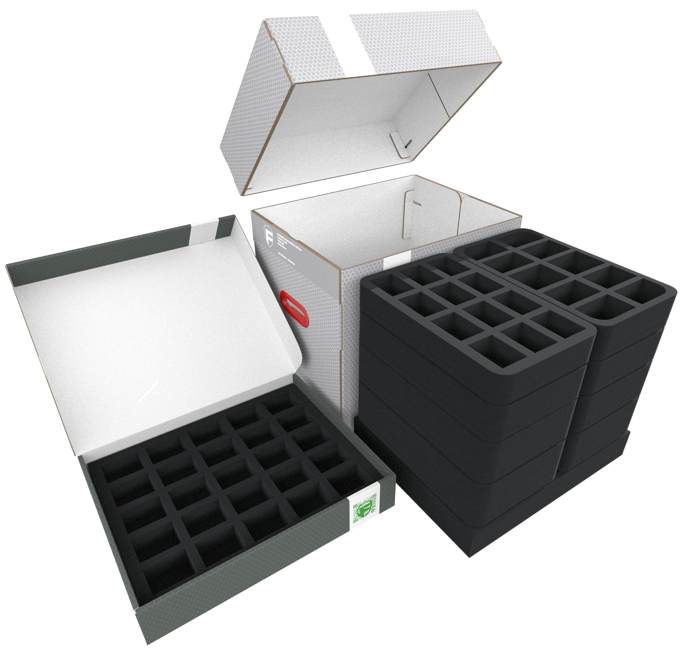 • 1 Full-Size foam tray with 25 compartments for standard infantry like Deadwalker Zombies and similar-sized models (FSLQ040BO)