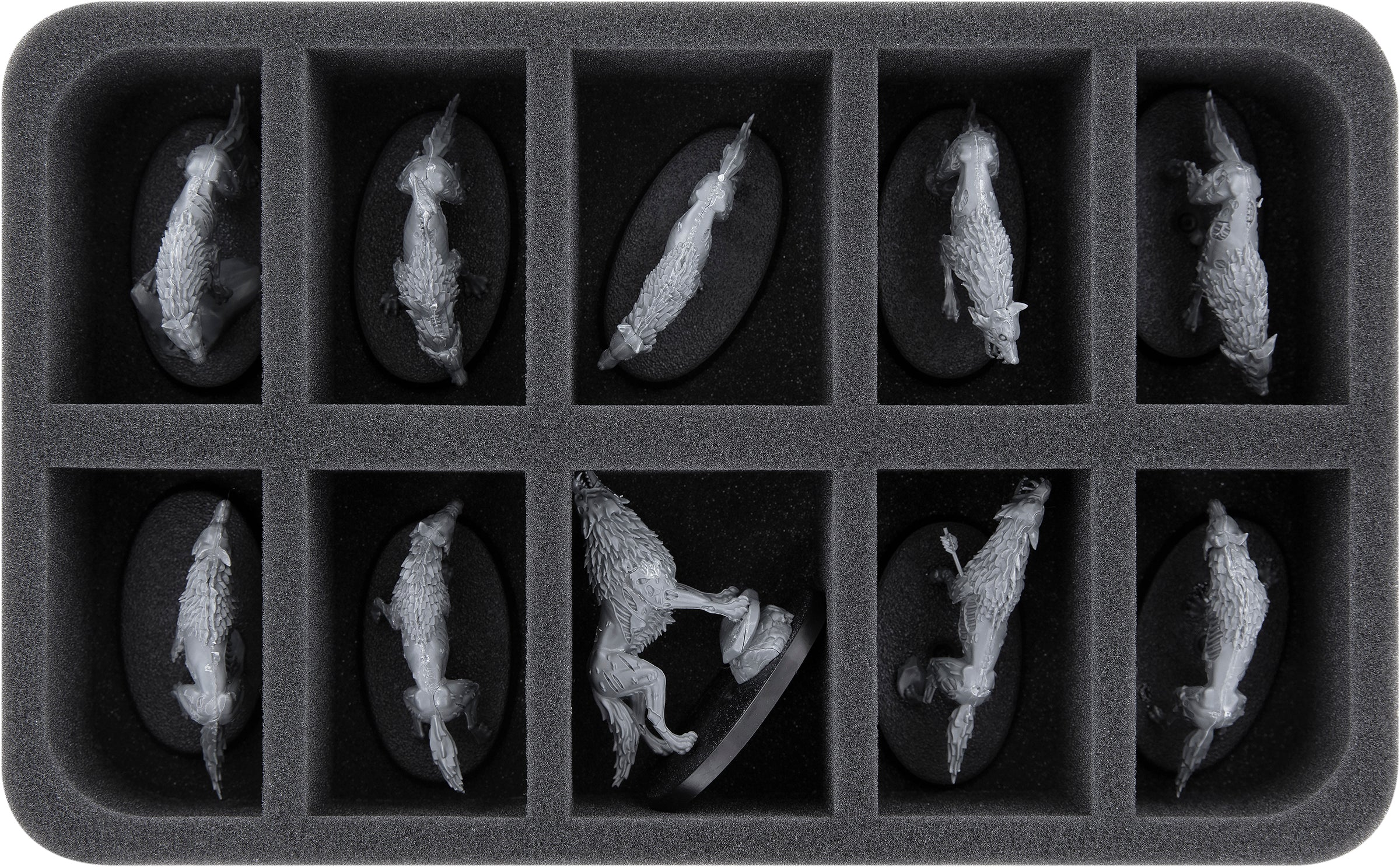 • 2 Half-Size foam trays, each with ten compartments for bulky infantry like Dire Wolves + models of similar size (HSBE050BO)