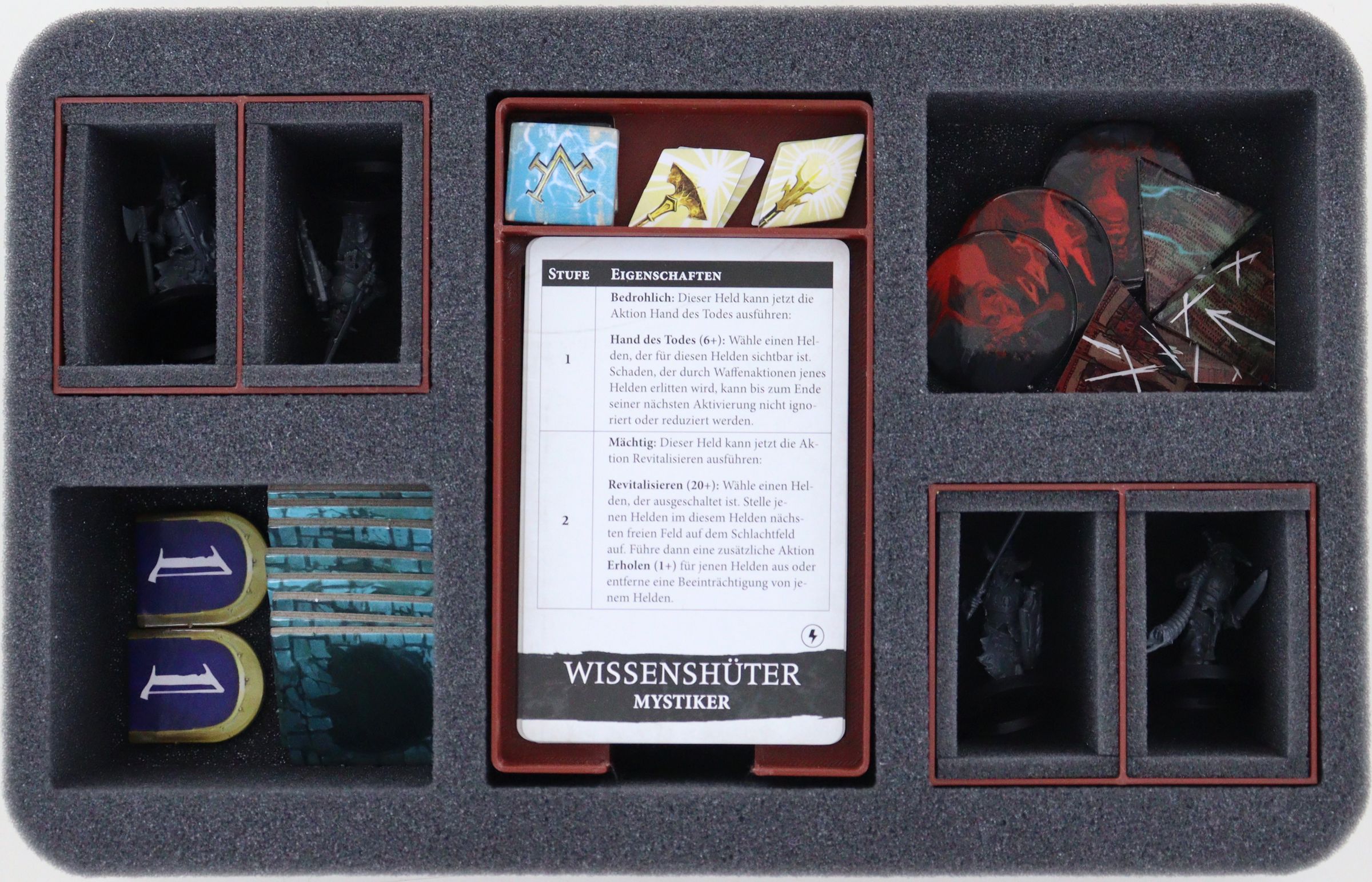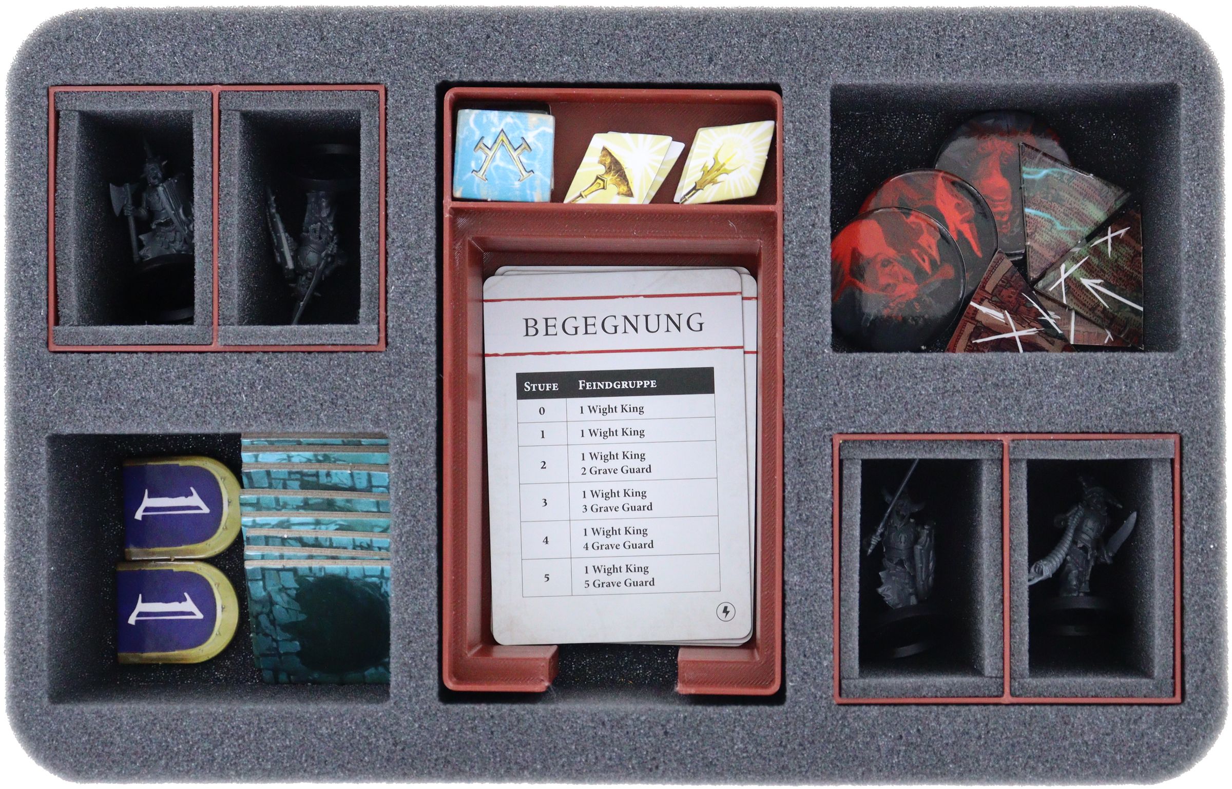• 2 plastic figure holders + 4 foam mats to fit small miniatures like Grave Guard