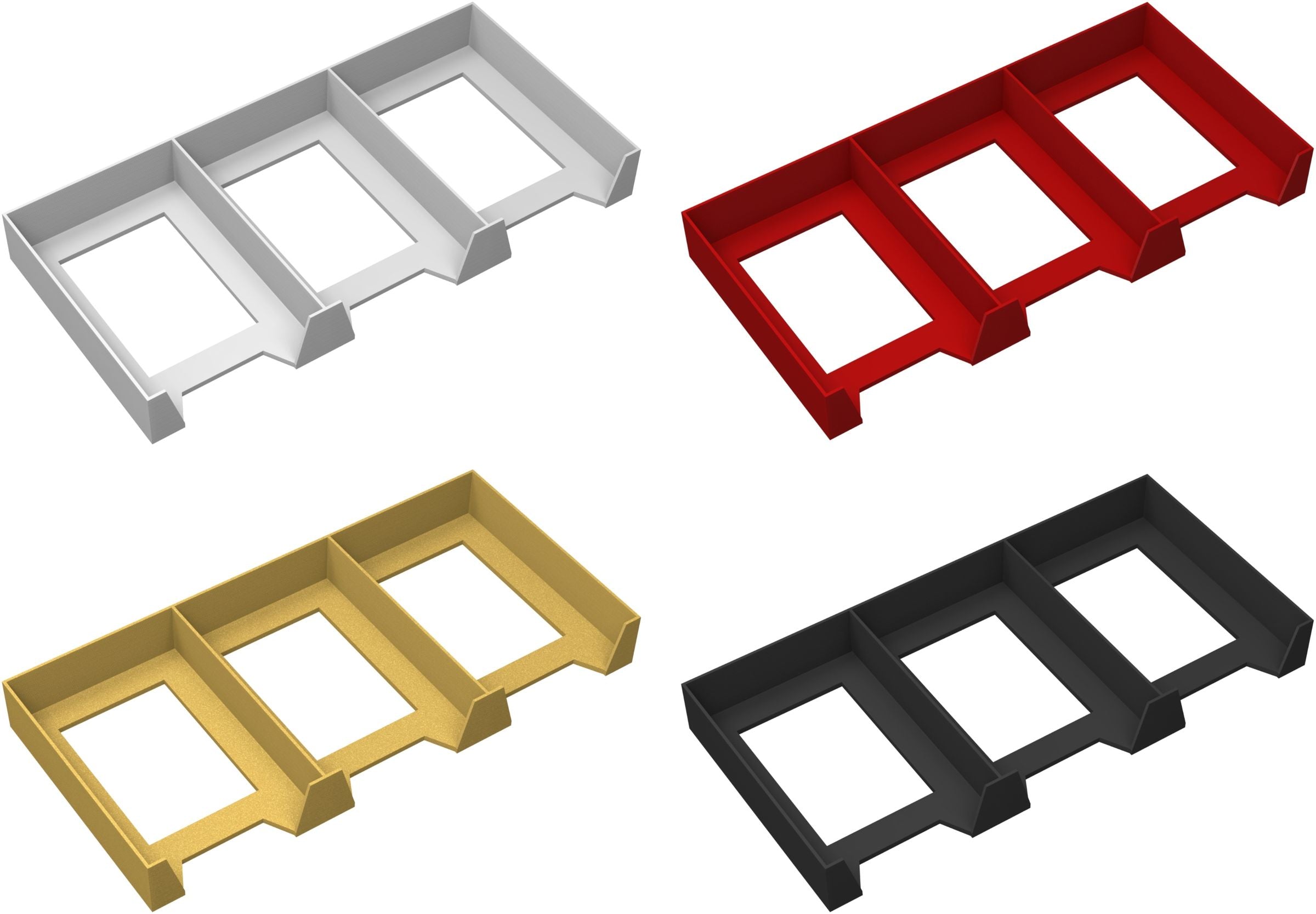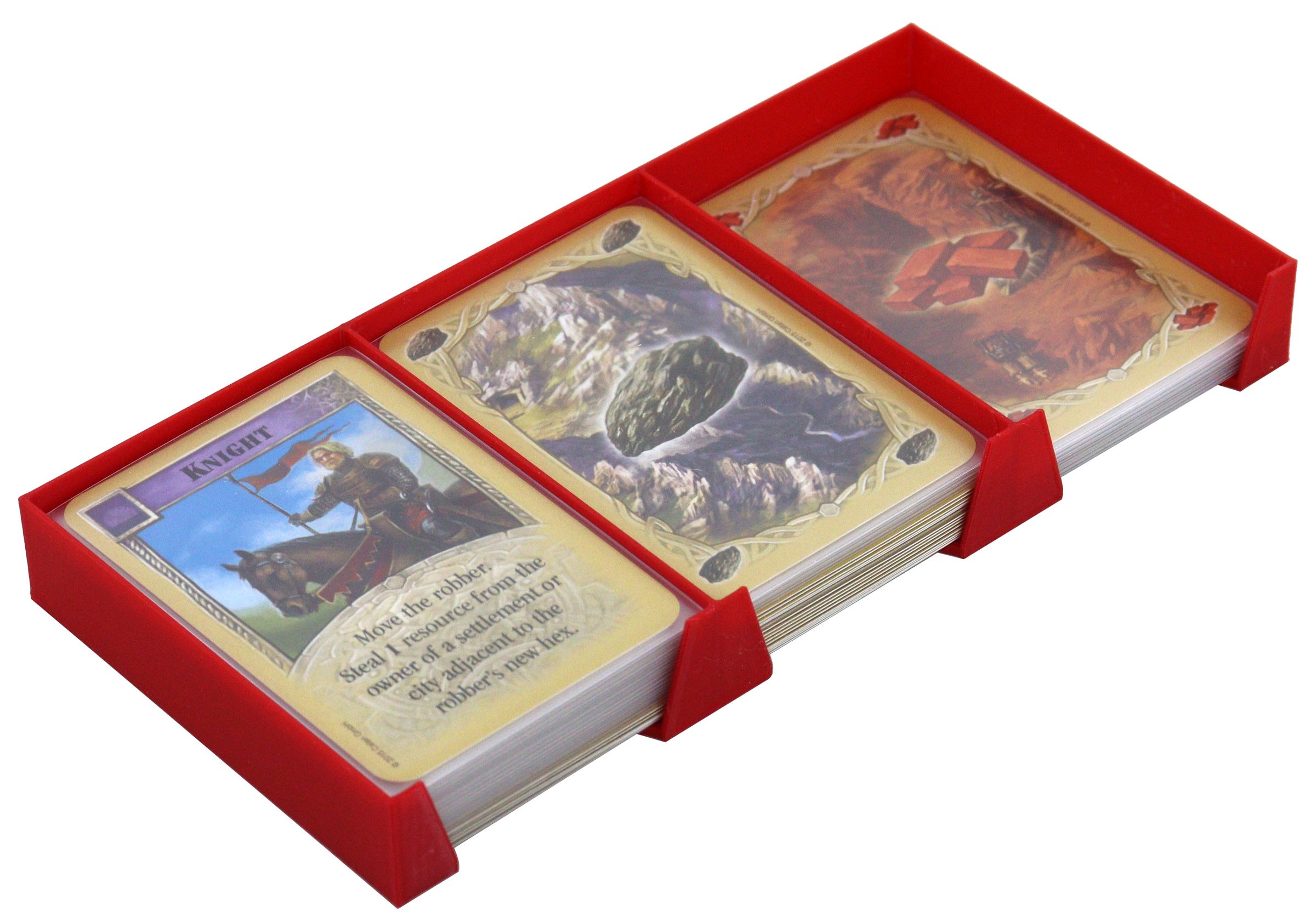 Whether it‘s tabletop, card game, or board game - The card holder saves nerves and time. It helps you to organize the different types of cards during the game, makes sure that the piles of cards do not fall over even when they‘re sleeved, and at the end of the game you can easily and neatly sort away your playing cards.