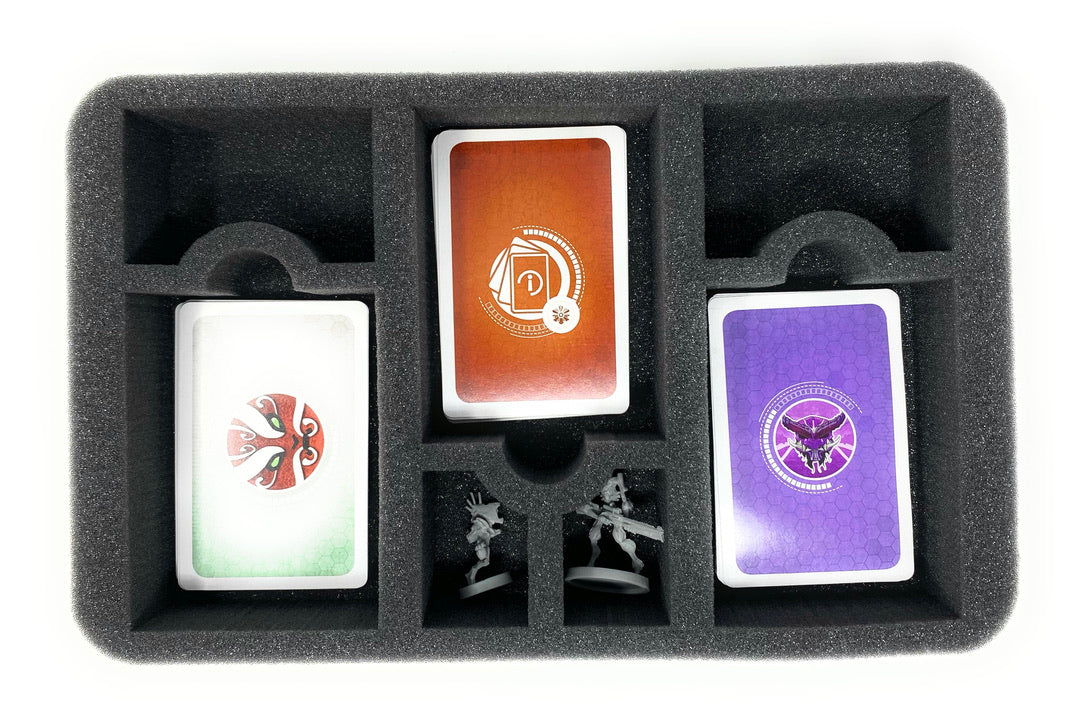 - 1 Half-Size foam tray with 16 compartments for Kickstarter exclusive miniatures like Ronin, Dark Observer, Gambler, Merchant, Abyssal and the Three Shadows + plastic token upgrades (HS035BO)