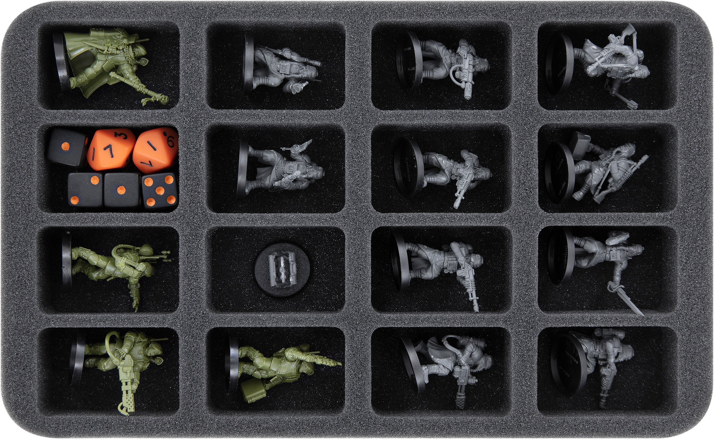 Precisely fitting compartments made of soft foam reliably protect your miniatures from damage and ensure that your painted units also arrive safely at the gaming table without scratches.