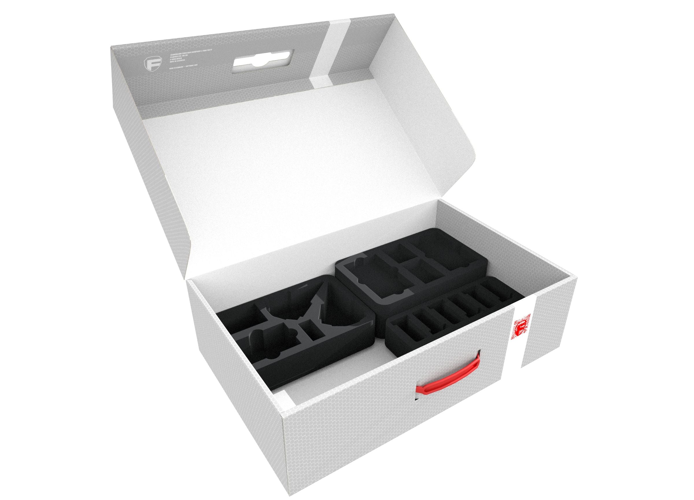 The Storage Box DSLB150 is the perfect solution to store and transport a huge Star Wars Armada collection. Each big ship fits twice into the storage box. In addition there is space for Squadrons, Tokens, Cards and other game accessories.