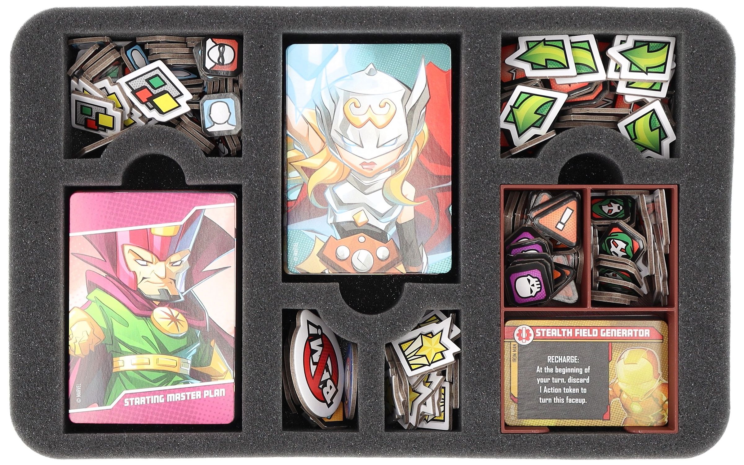 To make it easier for you to get started in the long run, you can get the matching Feldherr storage box including custom foam inserts for the Marvel United: Multiverse core game here.