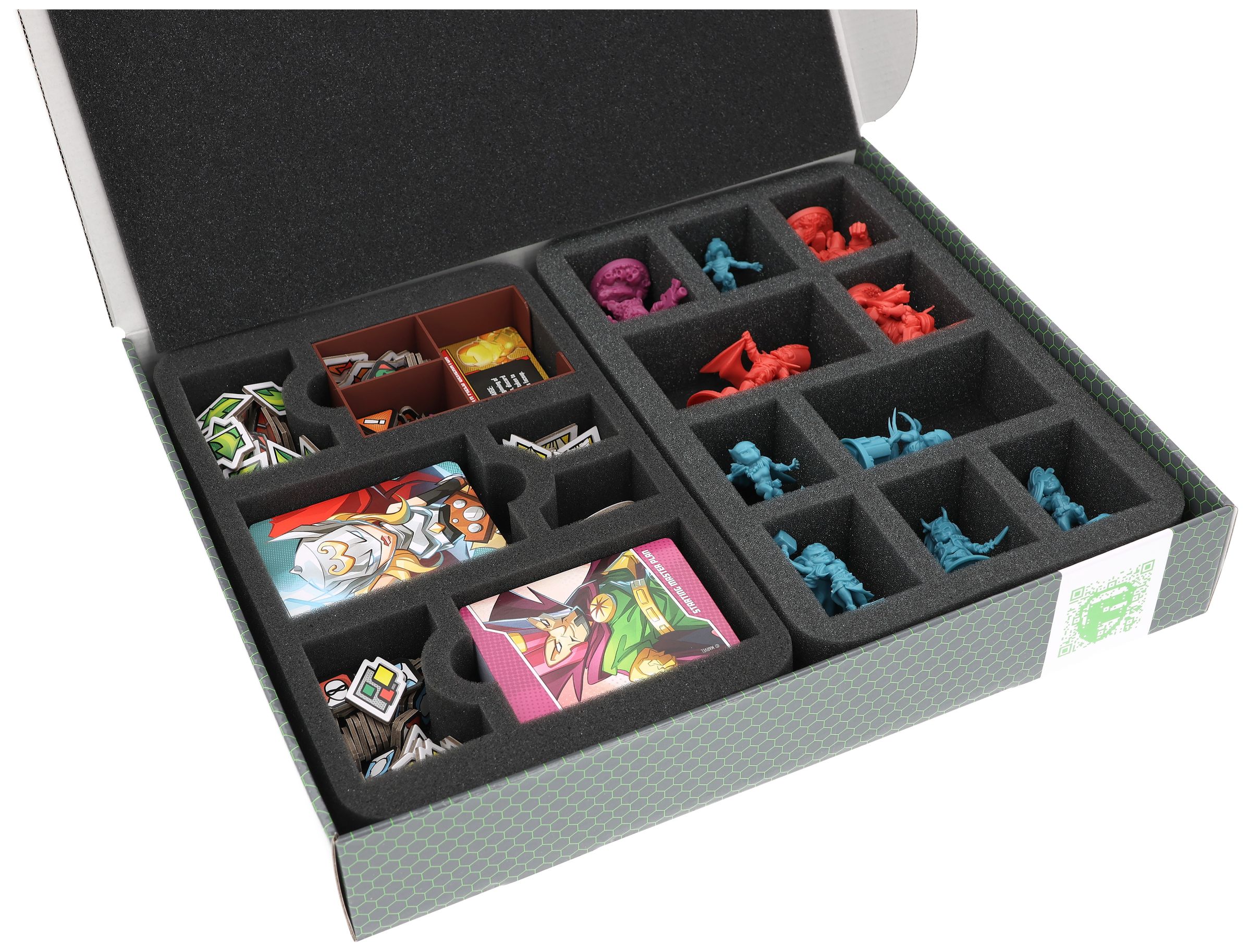 - Perfect organization: miniatures, cards and game material are stored compactly and safely