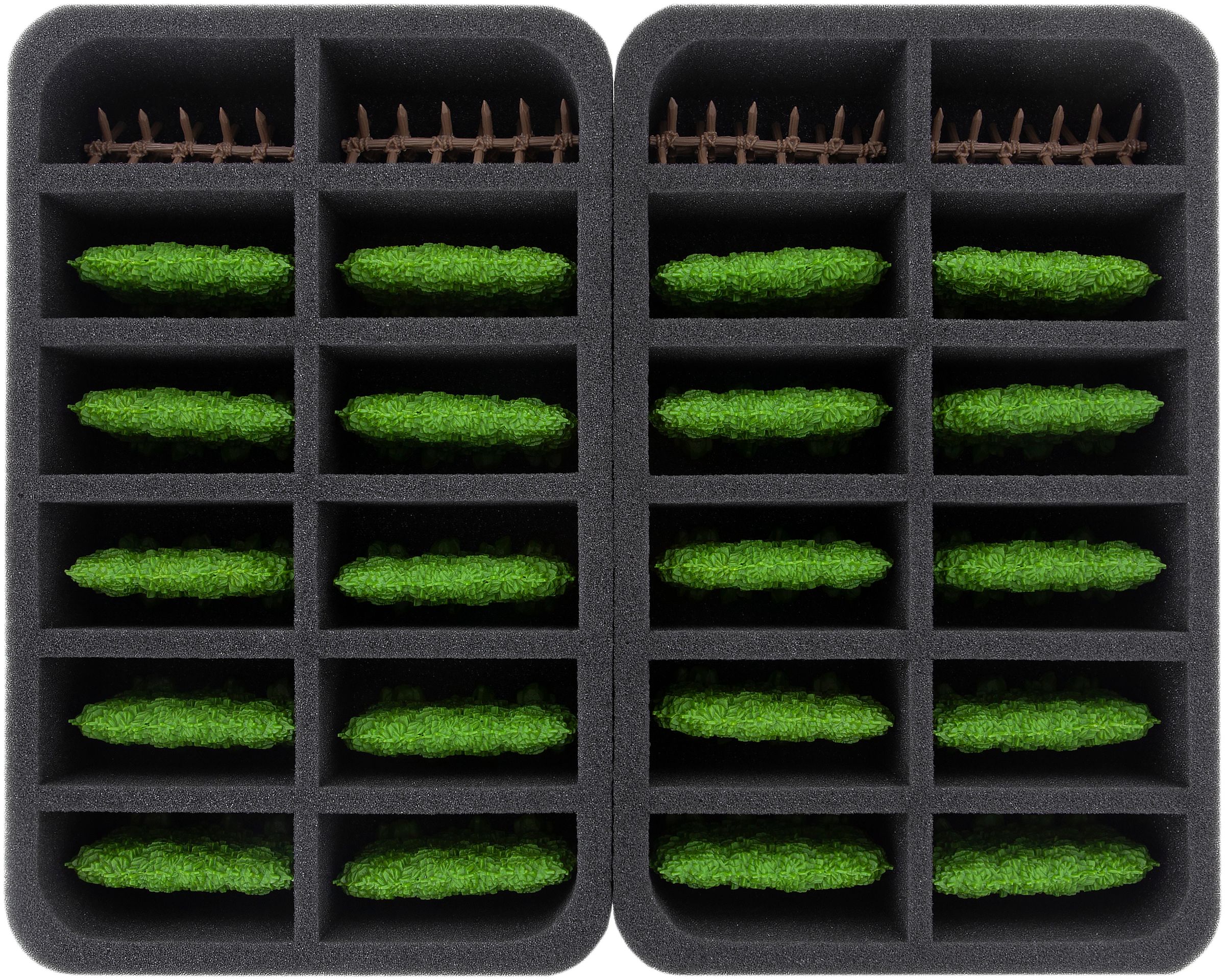 - 2 Half-Size foam tray each with 12 compartments for 20 Hedges und 4 Barriers (HSMECP060BO)