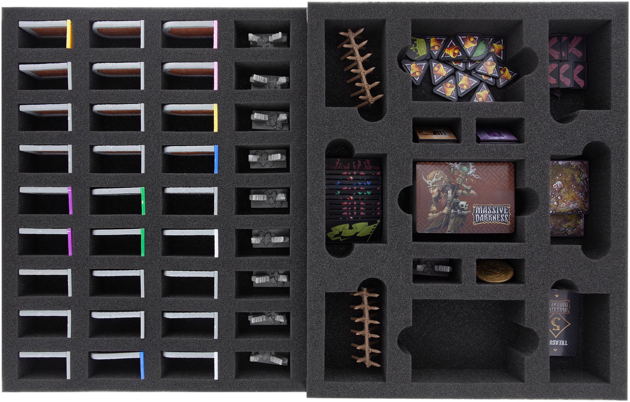 - 1 Full-Size foam tray with 13 compartments for Massive Darkness Crossover and 2 Barriers (FSLG050BO)