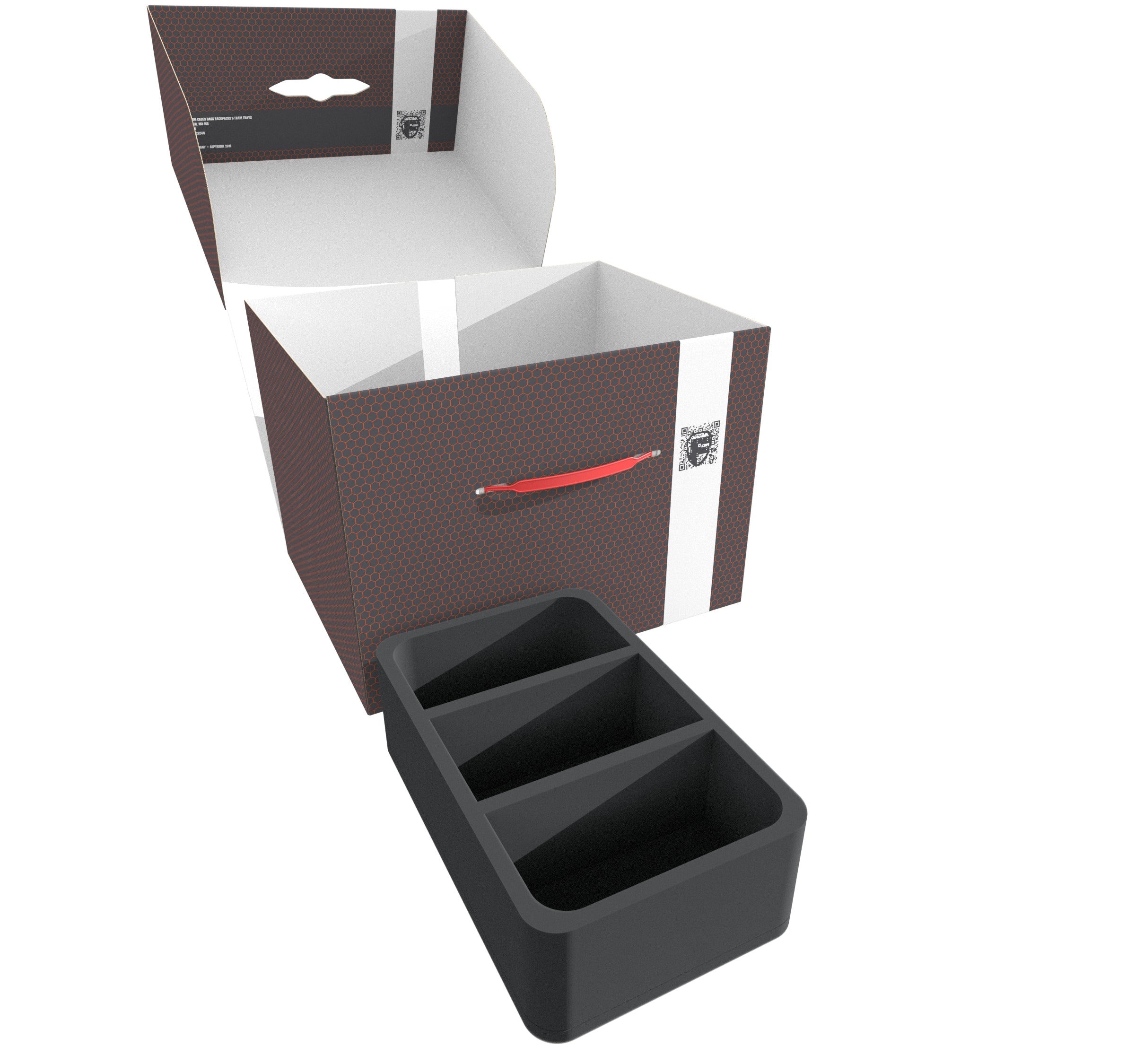 The Storage Box FSLB250 is made of coated, double-walled cardboard. This makes it not only pleasantly light but also particularly tear-resistant and stable. With the matching foam trays, miniatures and game material can be stored safely and dust-protected and can also be transported effortlessly with the plastic carrying handle.