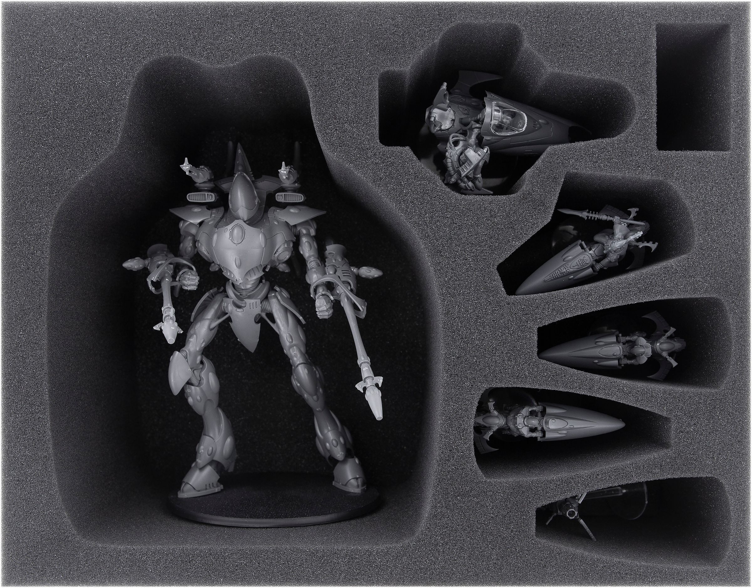 - 1 two-part foam tray for 1 Wraithknight, 4 Jetbikes and 1 Vyper (FSMEJU130BO + FSMEJV035)