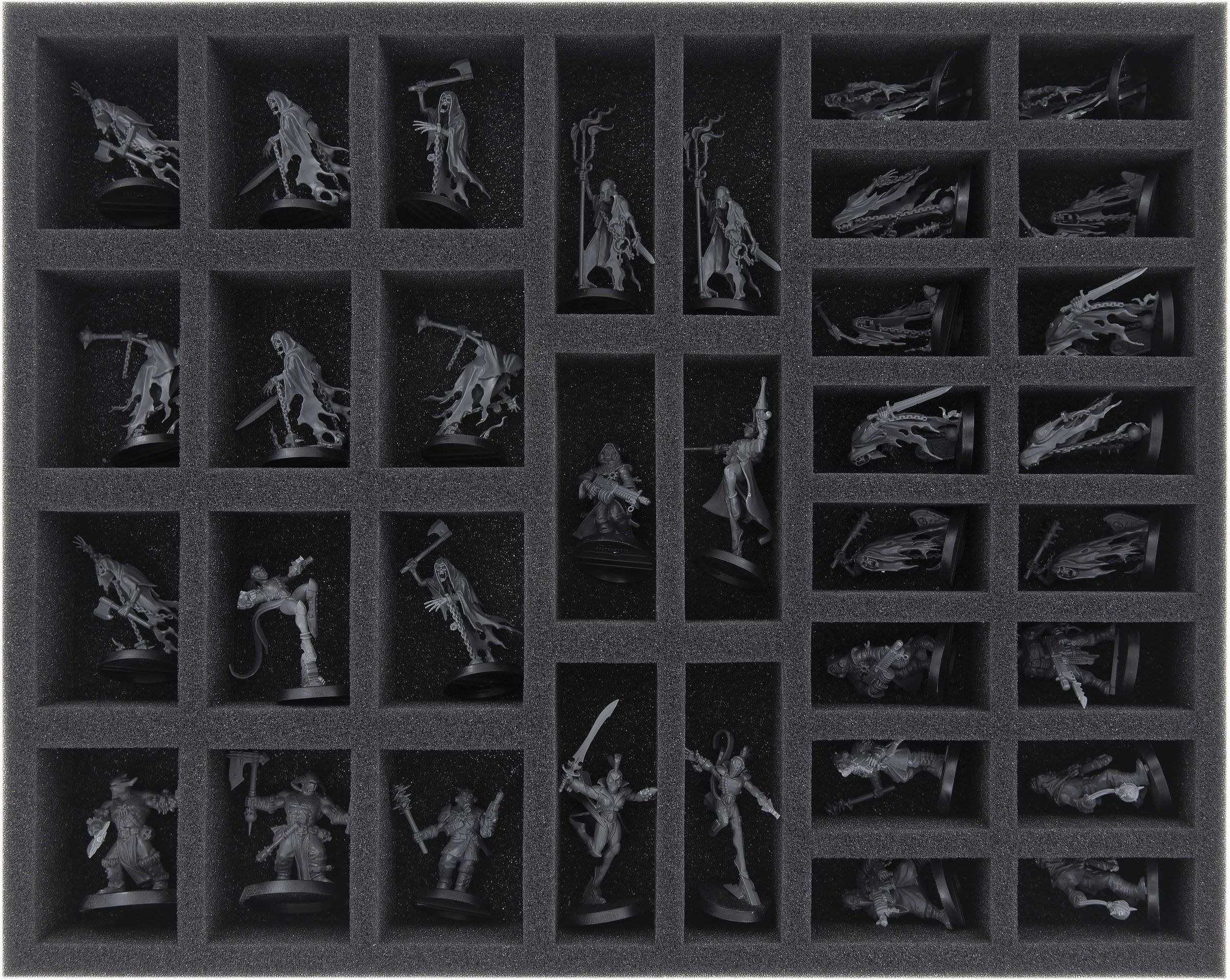The two Full-Size foam inserts offer space for 34 warrior models on 25 mm base - ideal for infected soldiers of the Astra Militarum, such as the Blood Brothers, or for some Necrophyte Hybrids.