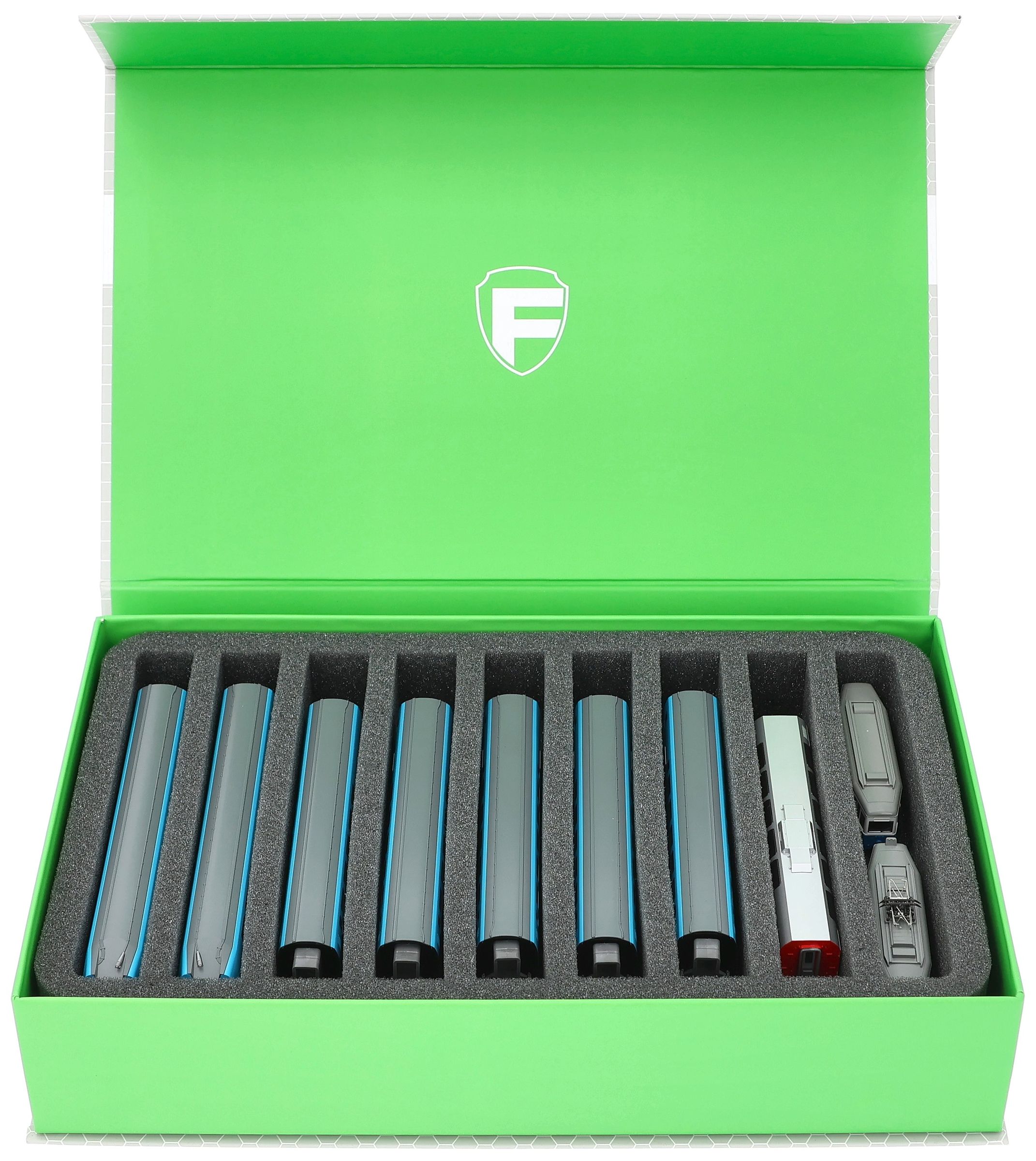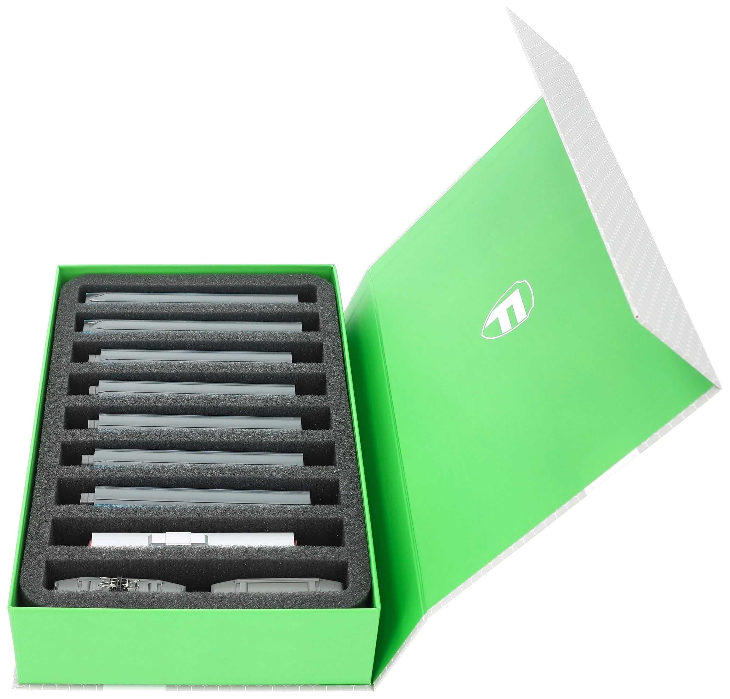 Stored soft and transported safely – your models are safe with this Feldherr Magnetic Box green with one foam insert for model railways in N Gauge.
