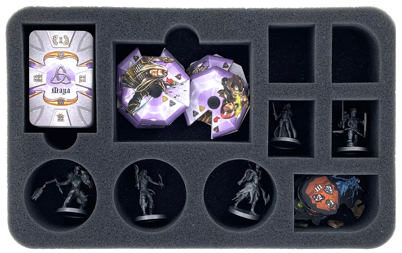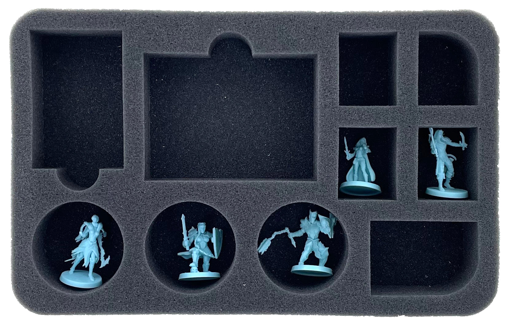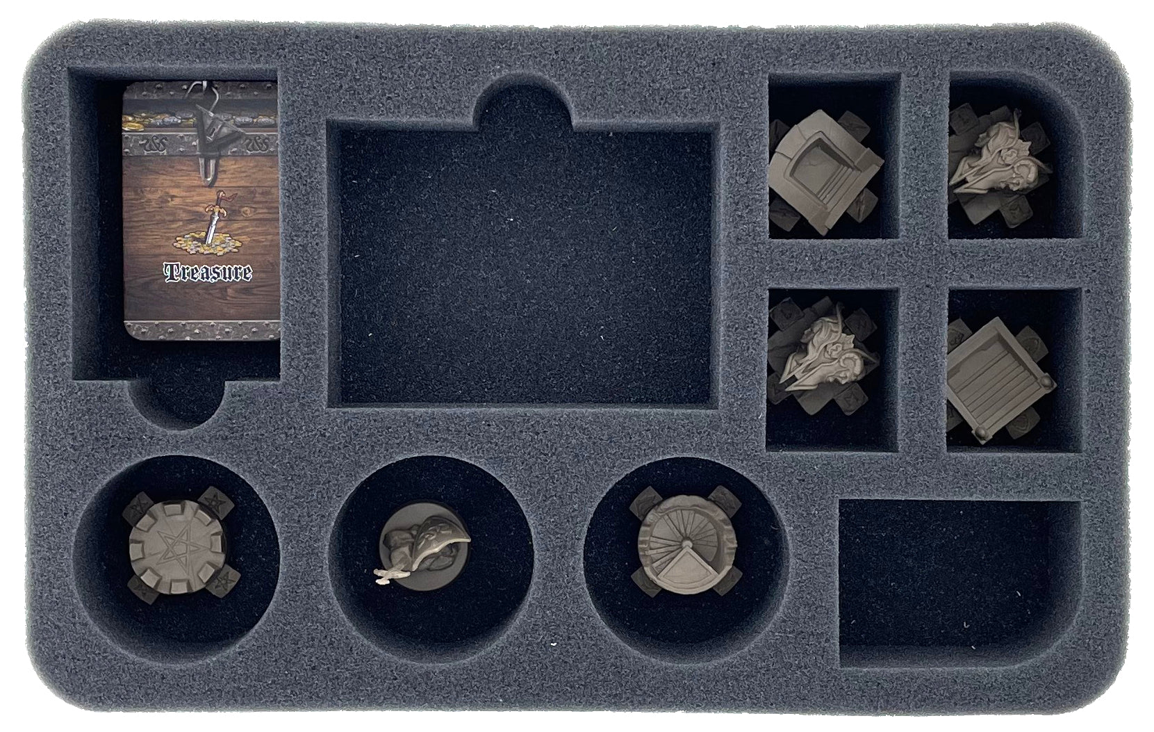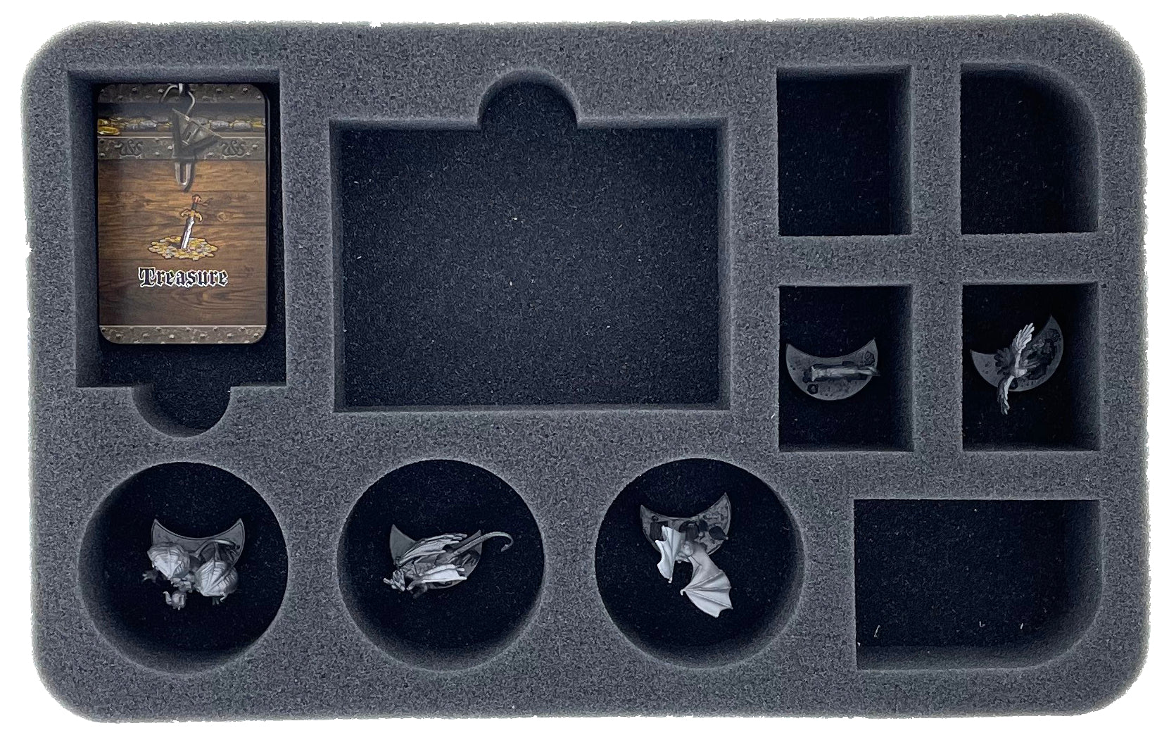 • 1 Half-Size foam tray with 10 compartments for miniatures + cards + small-sized game material (HSFW045BO)