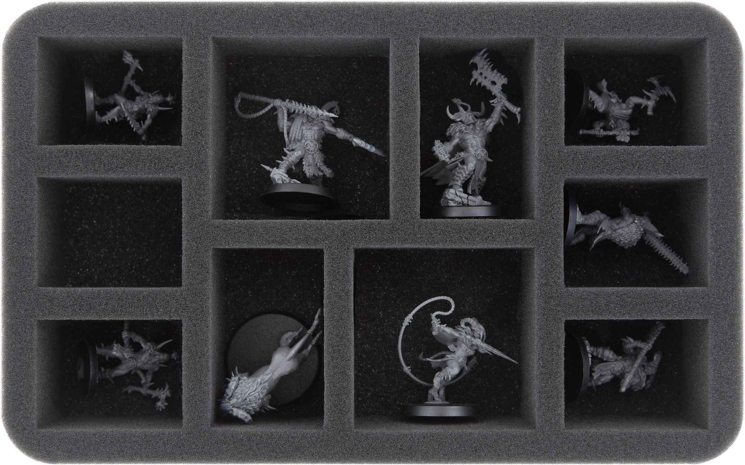The insert offers you 10 compartments for each model of your warband, one custom-fit compartment for each miniature. Another compartment remains at your disposal.