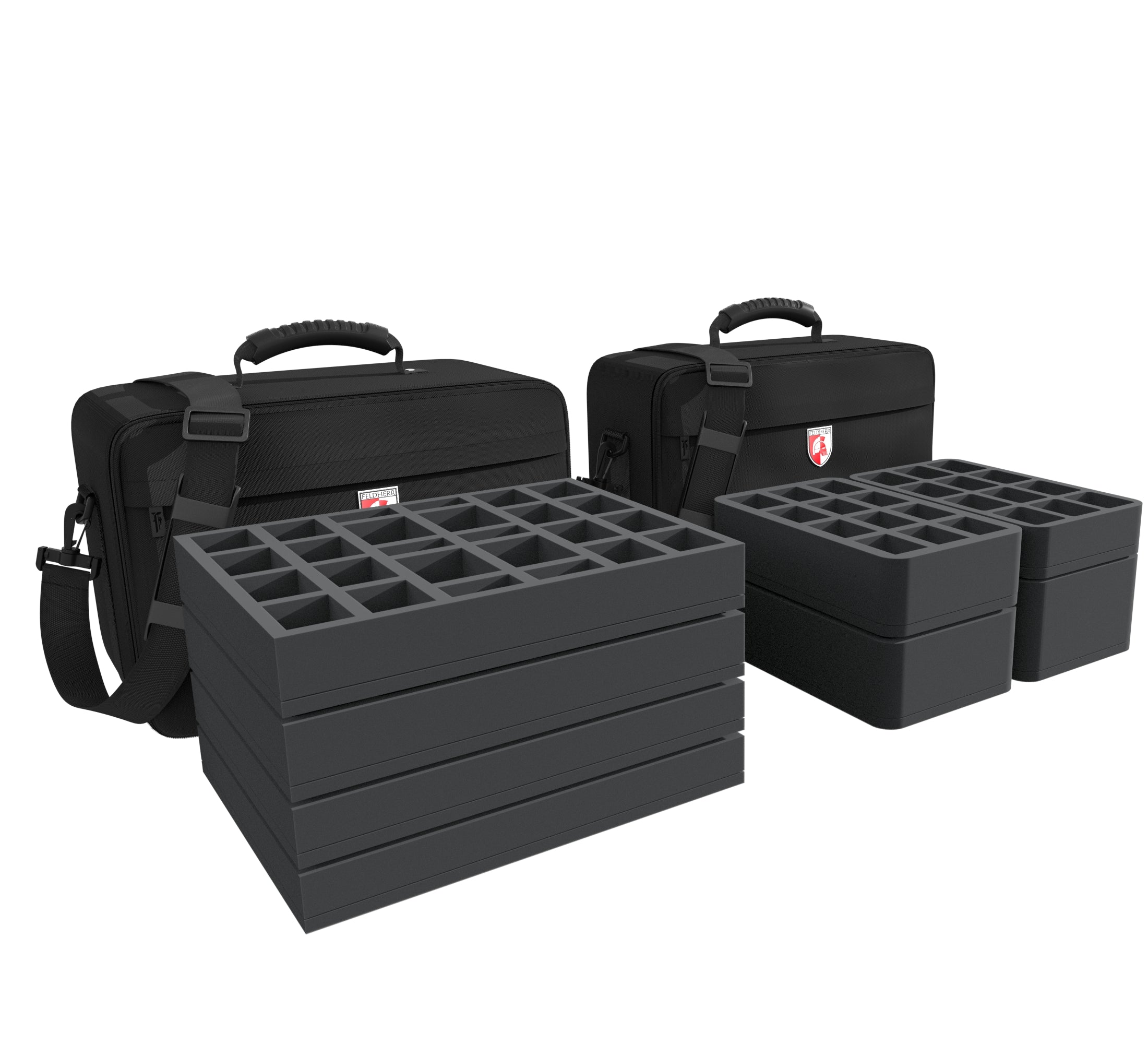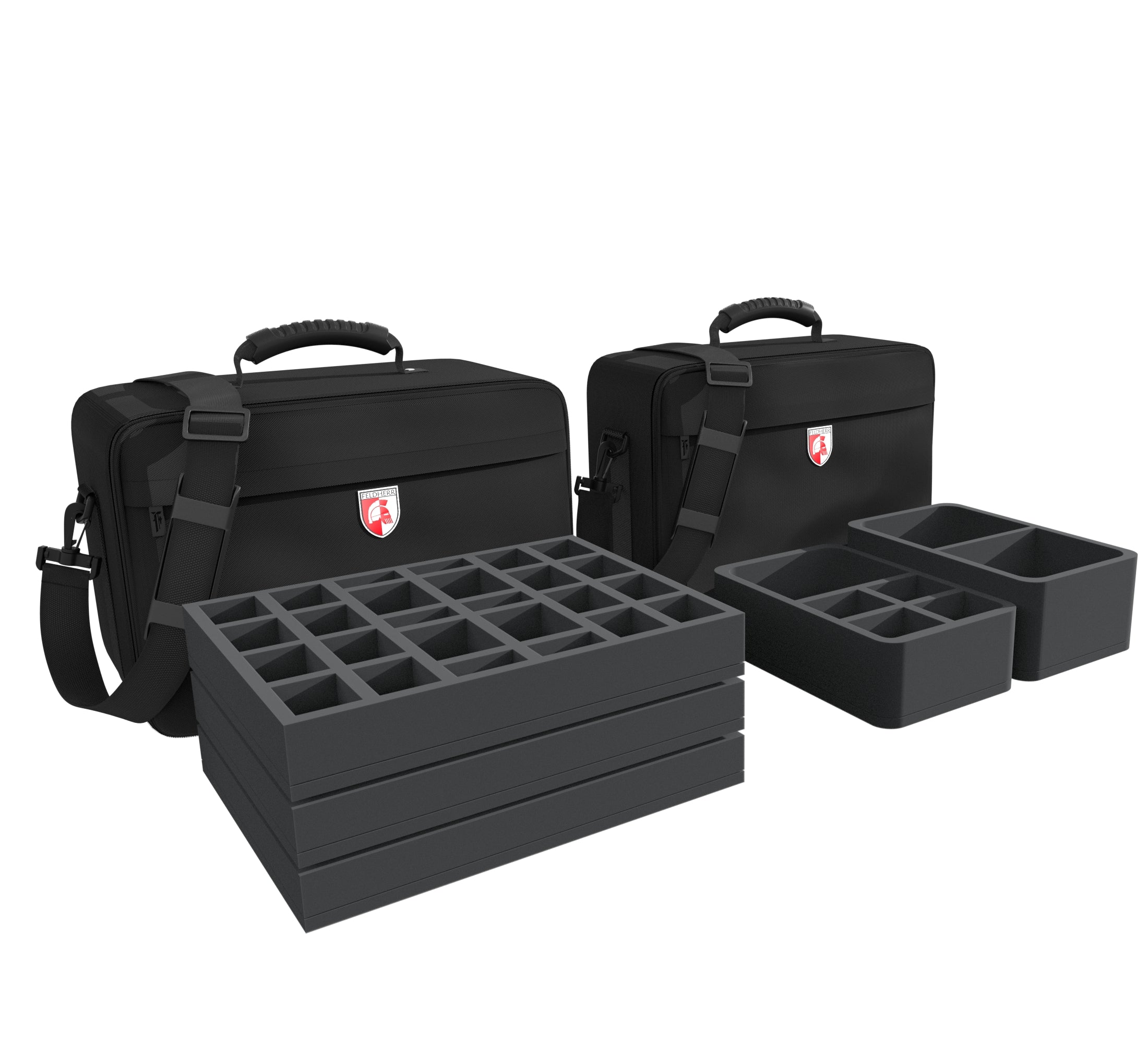 Suited for that, we've put together a bundle for you that doesn't require superpowers to carry. A MAXI PLUS and a MEDIUM PLUS bag filled with custom foam offer plenty of storage space to stow your more than 120 models. The soft foam will sufficiently protect your miniatures from damage. An additional foam tray lets you store more figures from the Marvel United Universe in the bags.
