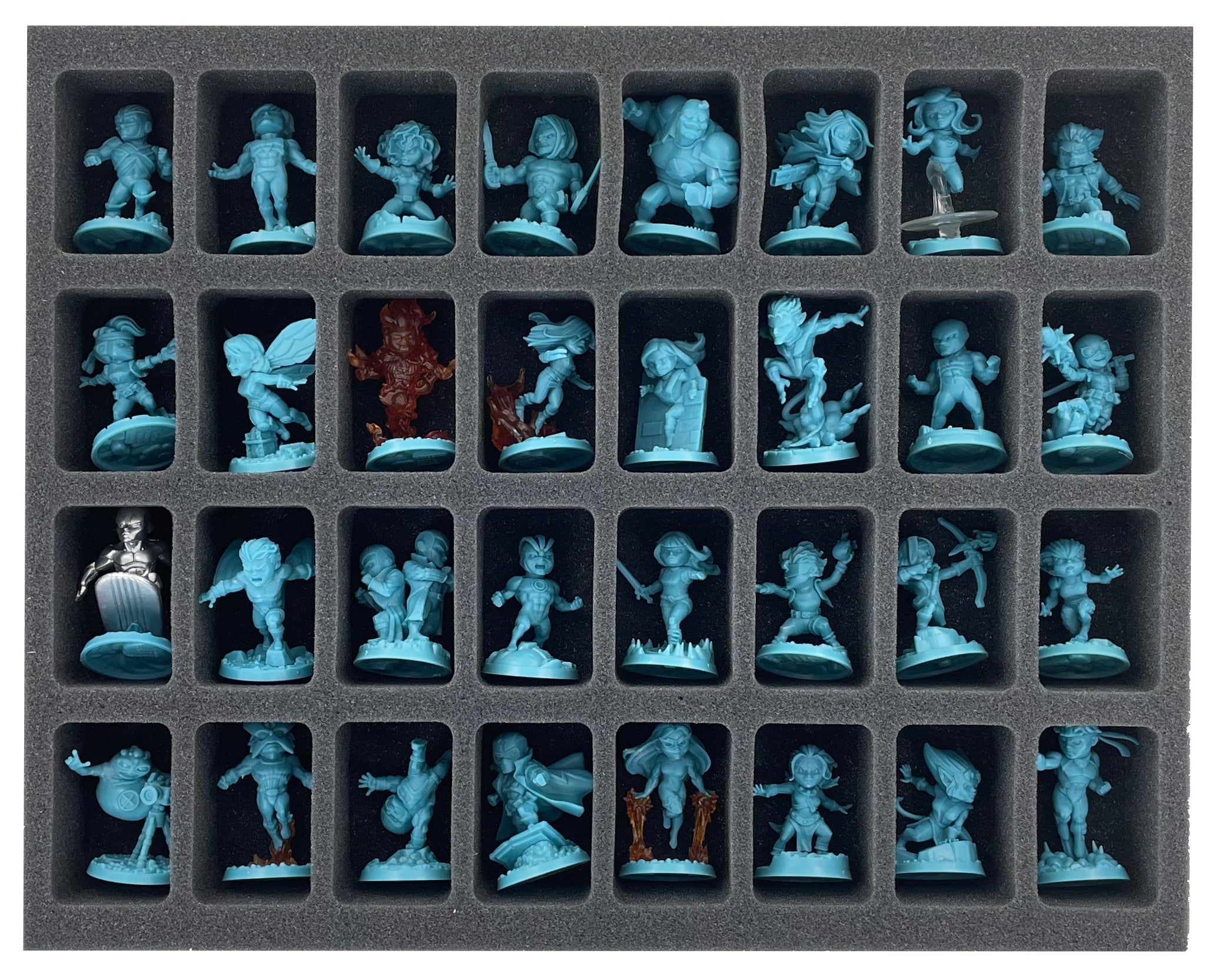 - 2 Full-Size foam trays, each with 32 compartments for miniatures (FSMEDS045BO)