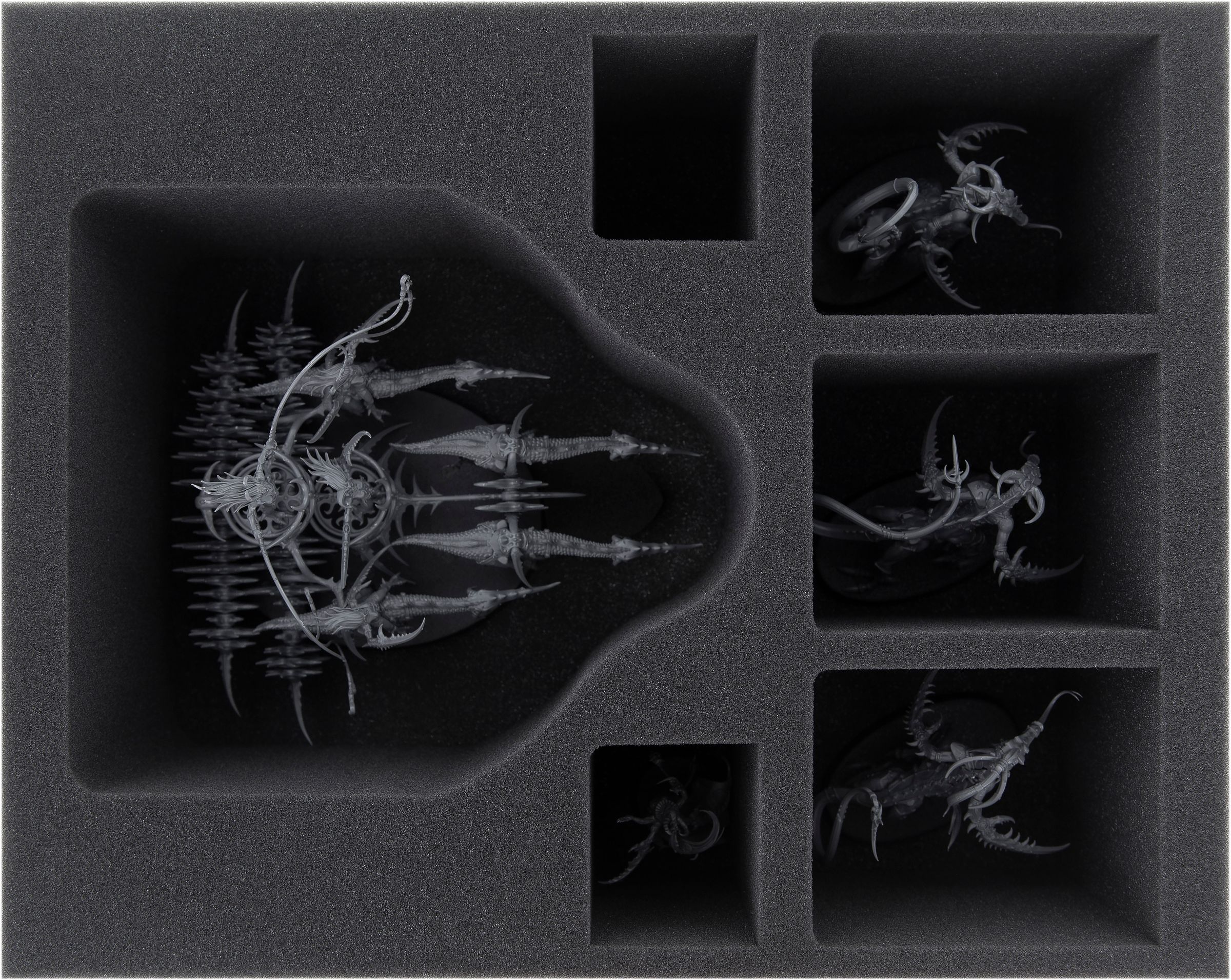 - 1 Full-Size foam tray with 6 compartments for the Exalted Seeker Chariot and 5 more Slaanesh models (FSMEOL100BO)