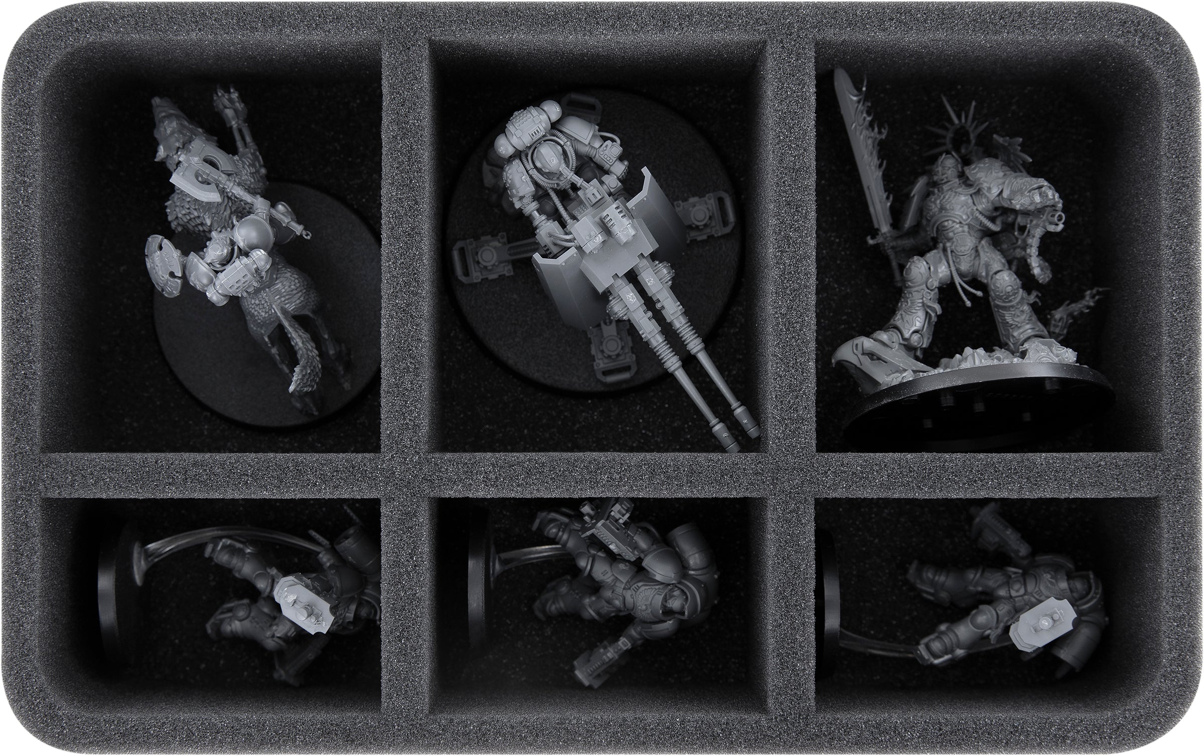 The 6-compartment foam insert is especially well suited for safely storing the Thunderwolf Cavalry or models of the same size.