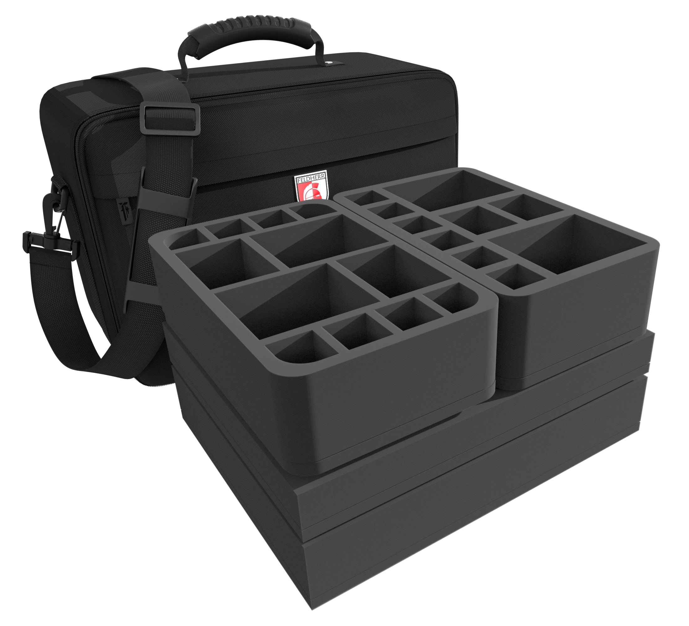 This MAXI bag, filled with matching Feldherr foam trays, holds up to 79 miniatures of your crews.