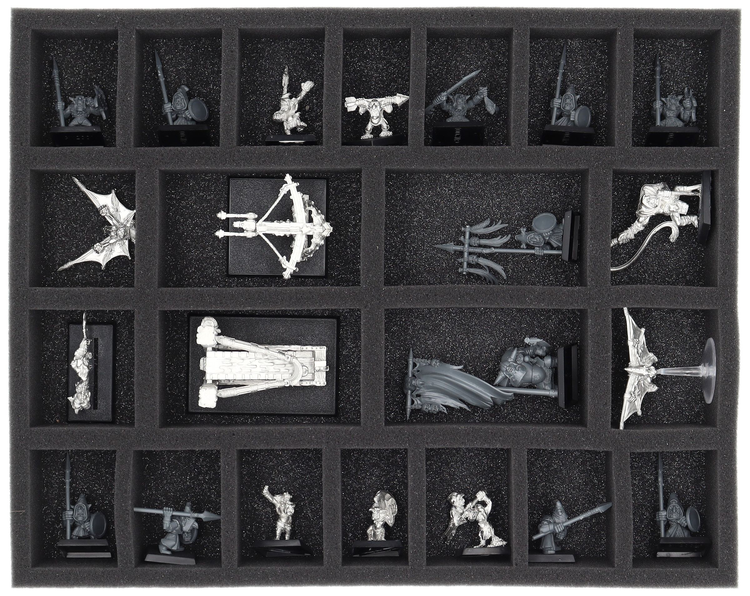 - 1 x FS050A121 – Full-Size foam tray with 22 compartments for e.g. Orc Boyz Mob, Night Goblin Mob, Goblin Mob, Doom Diver Catapult, Goblin Bolt Throwa