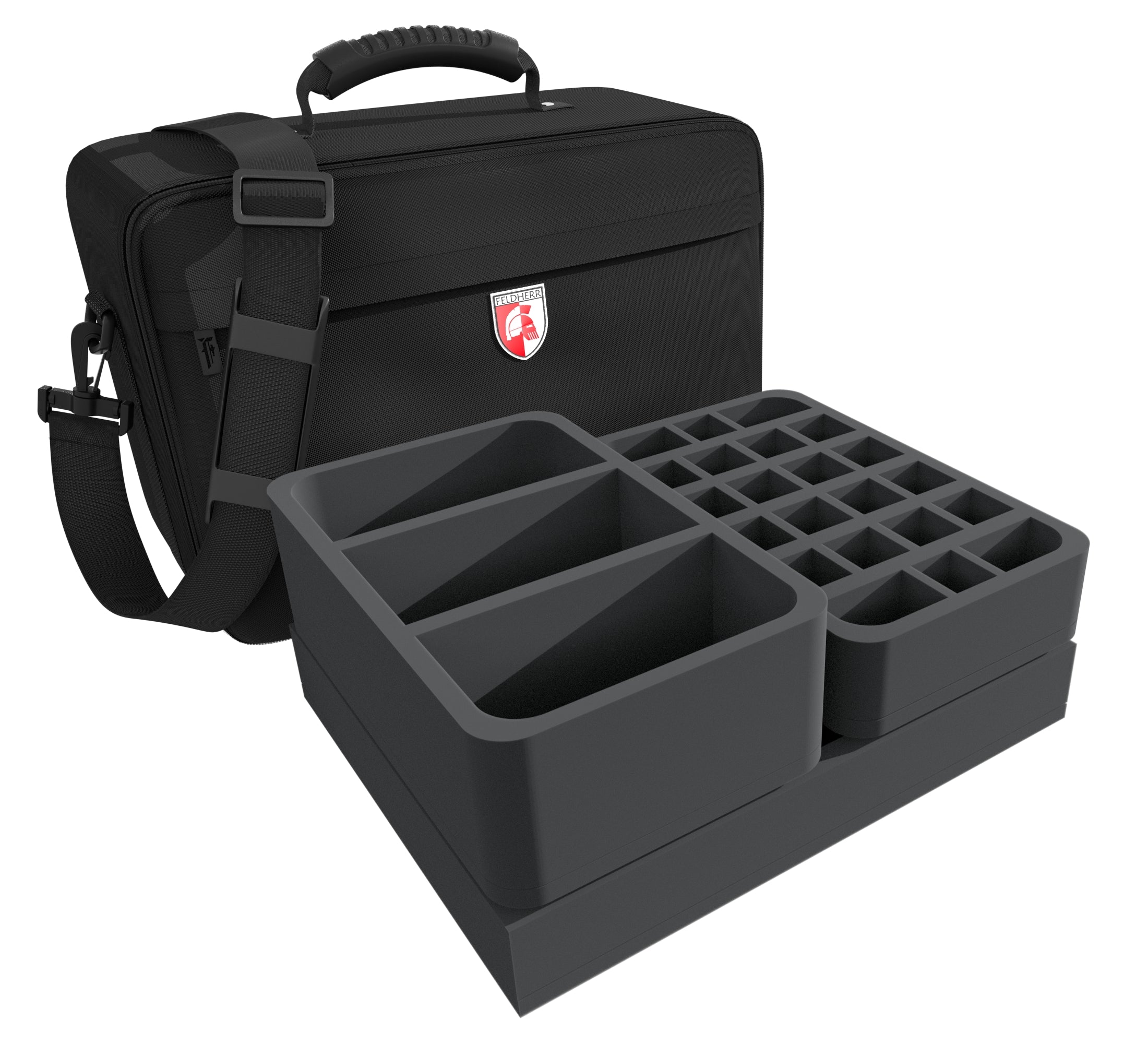 Finally, the supplied foam topper ensures that all miniatures are completely surrounded by foam and that the figures of the upper insert do not fall out of the mat or rub against the fabric of the bags during transport.
