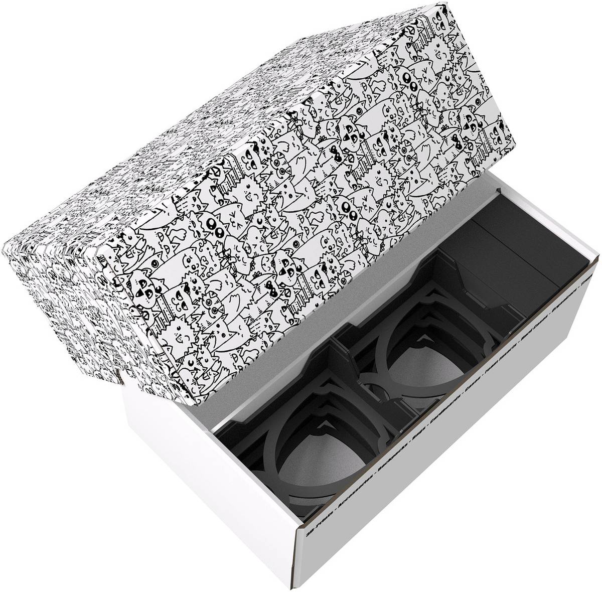 Each box consists of two parts: box and lid. Both pieces are made of coated cardboard.