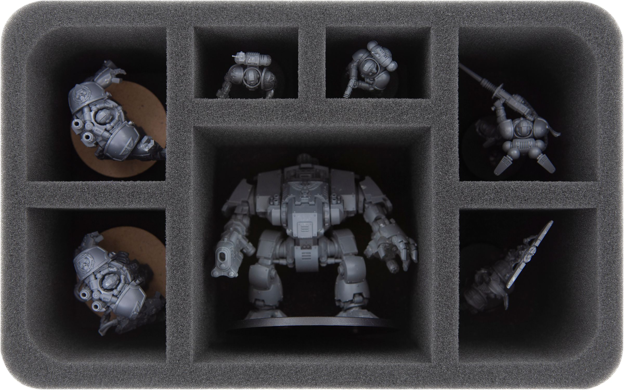 - 1 Half-Size foam tray for 1 Redemptor Dreadnought + 3 Inceptors (HSMEME110BO)