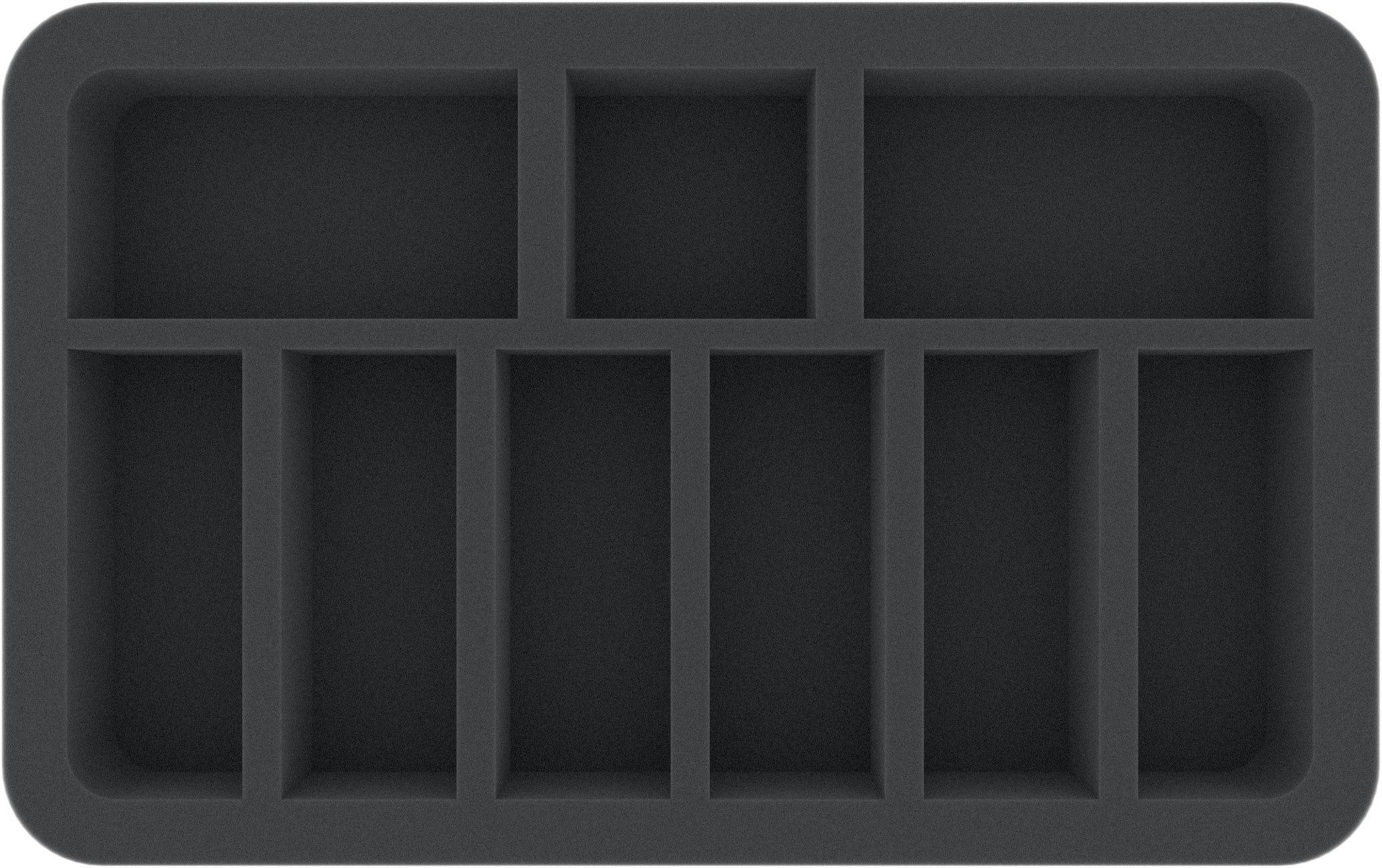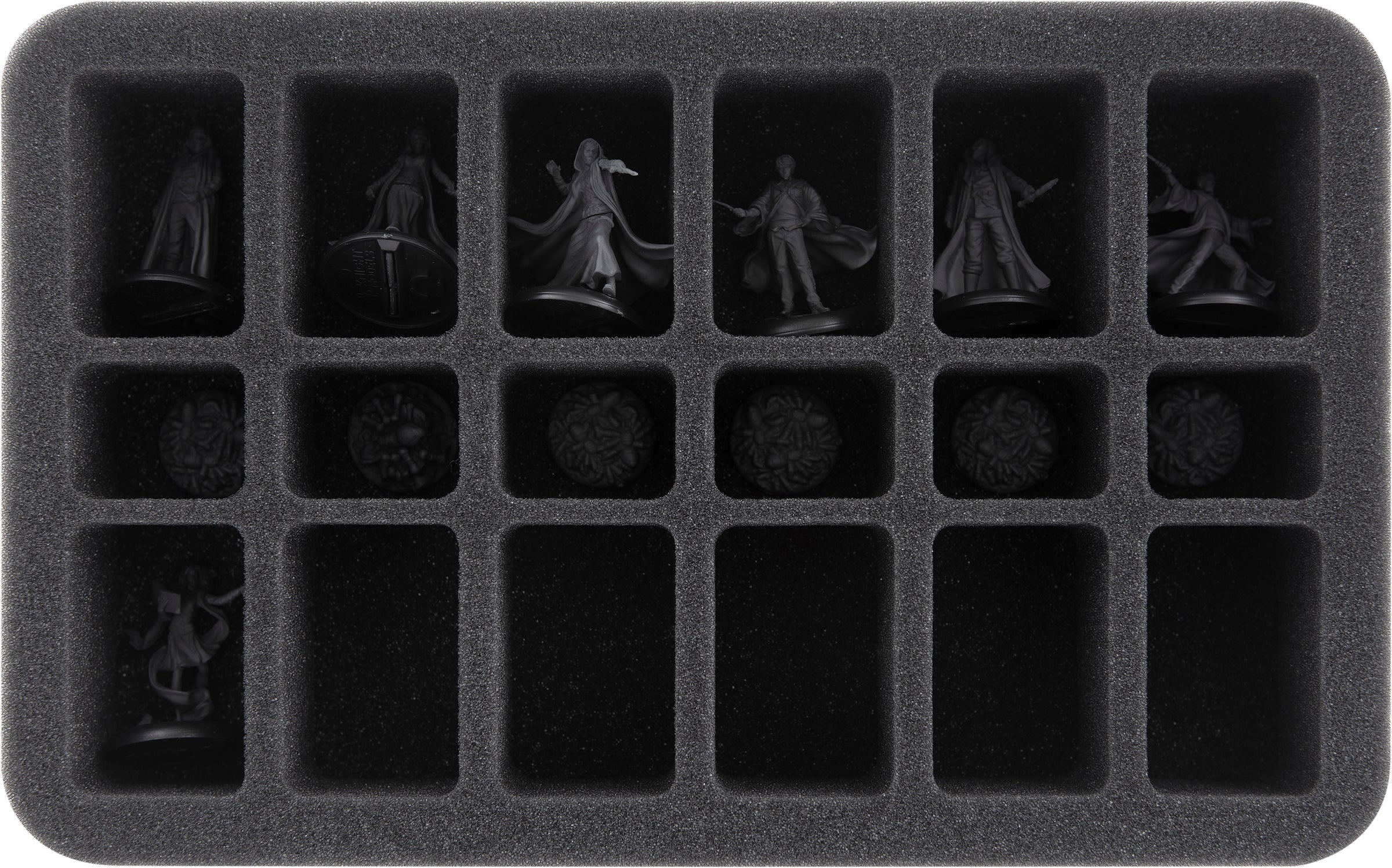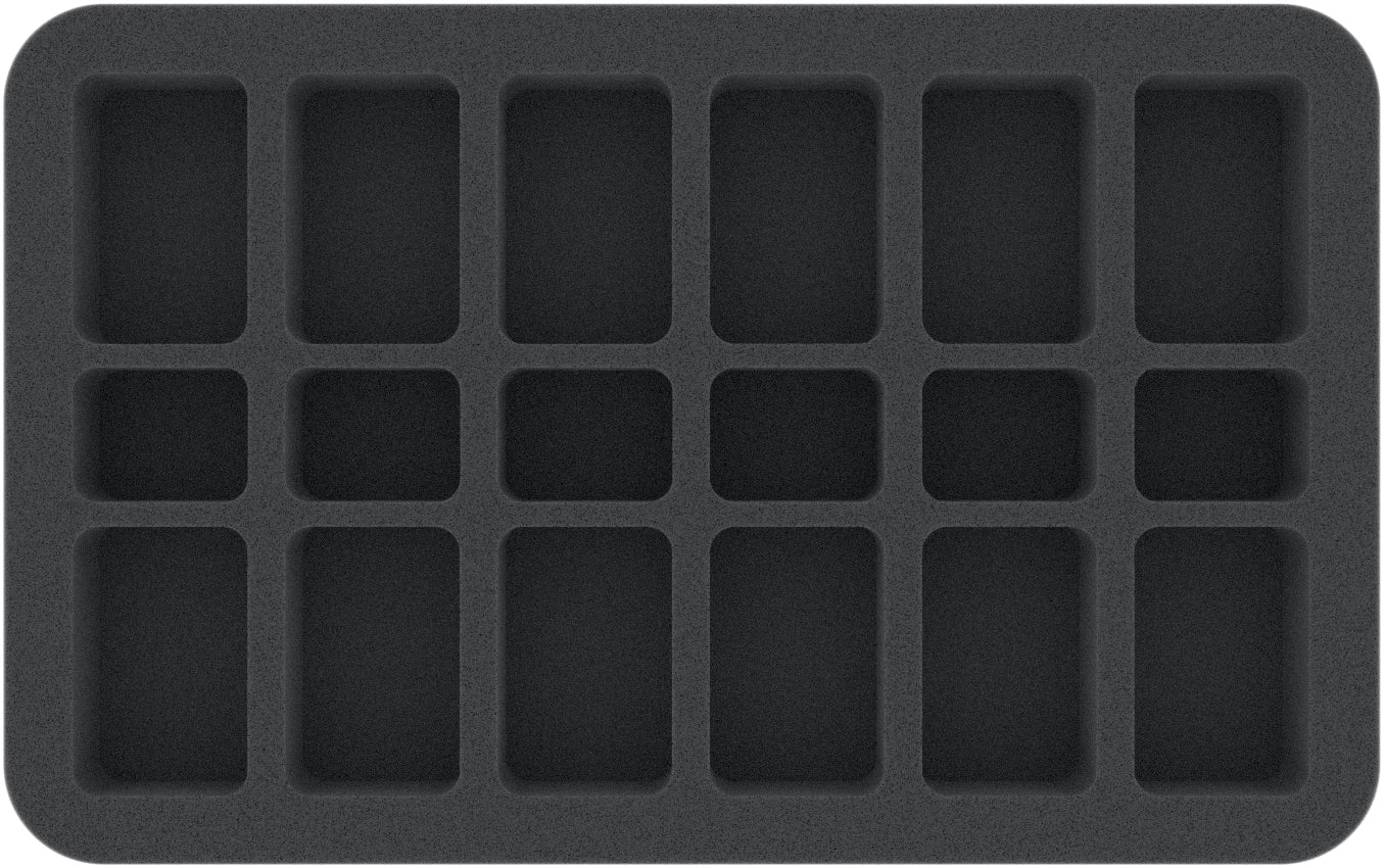 - 1 Half-Size foam tray with 18 compartments for miniatures (HS050BF01BO)