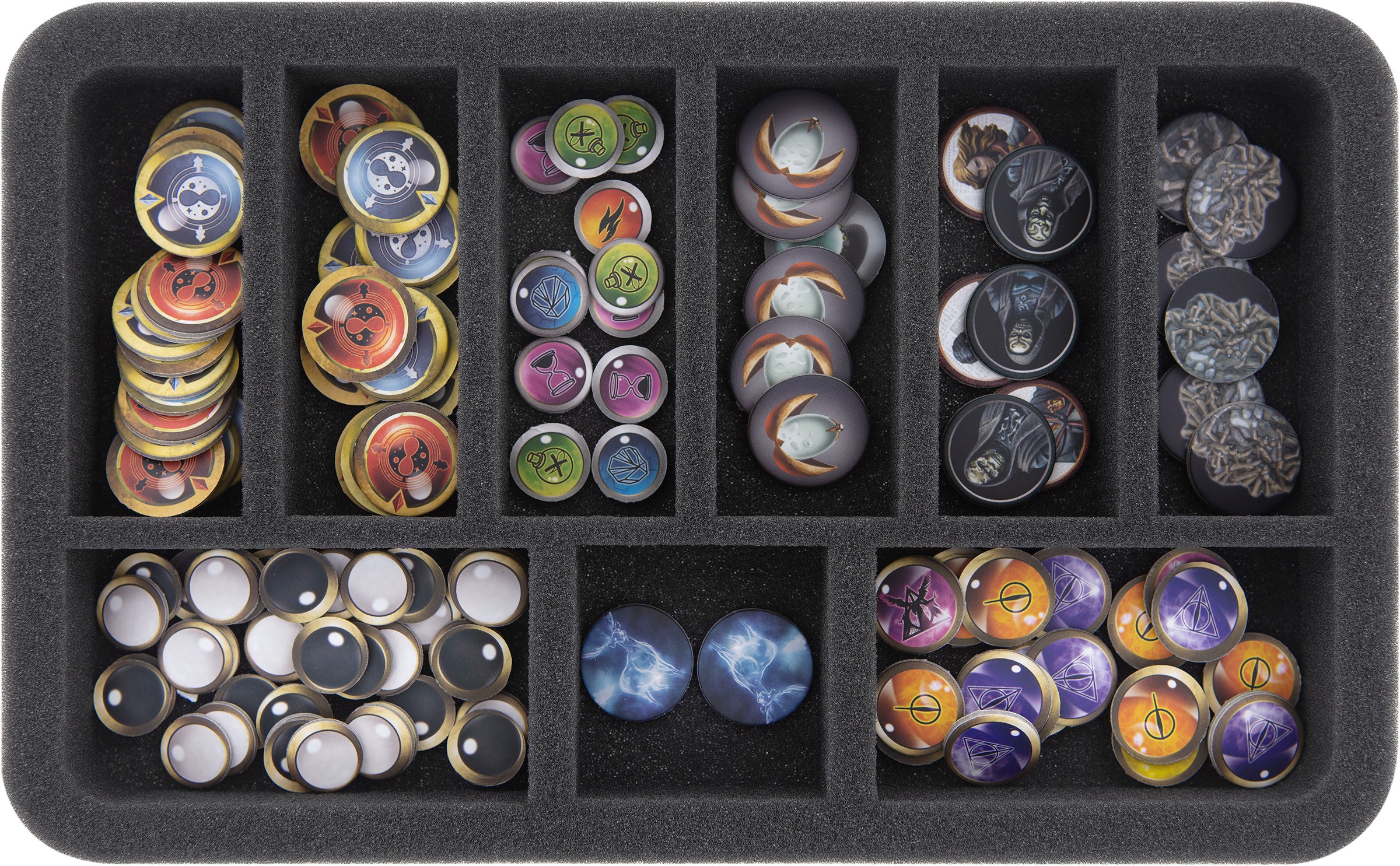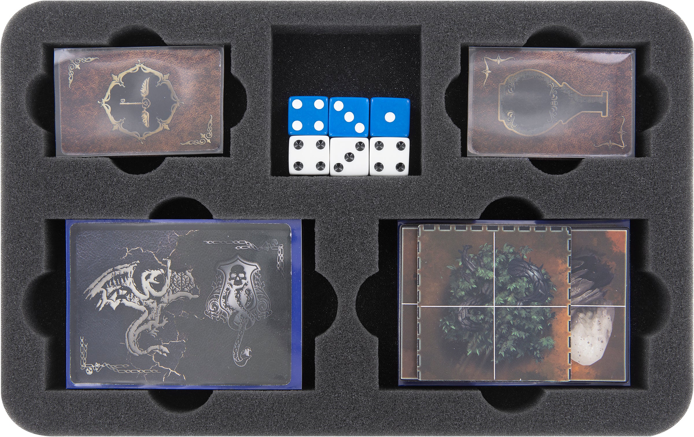- 2 Half-Size foam tray with 5 compartments for cards, dice, and markers (HSMEQB030BO)