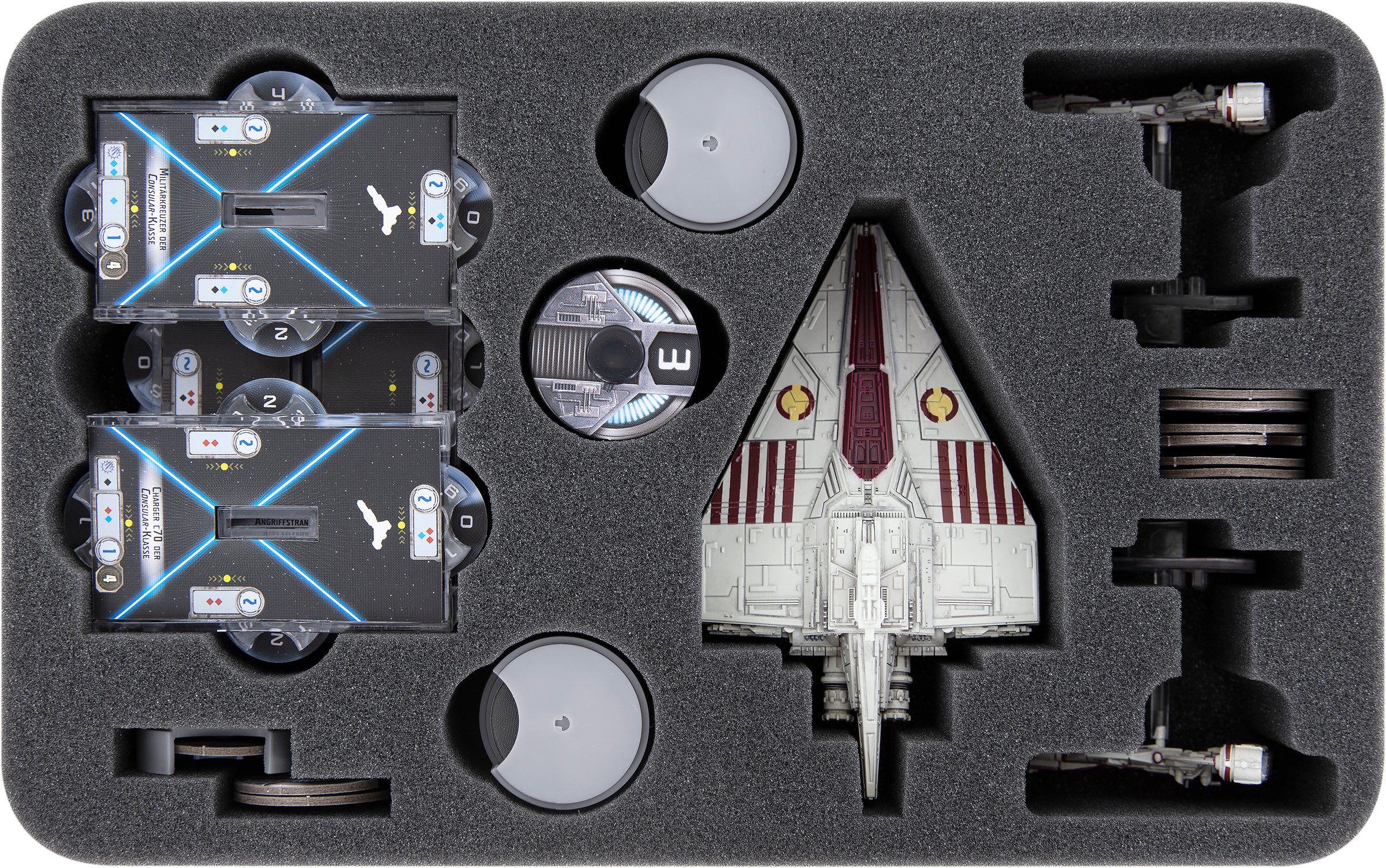 - 1 Half-Size foam tray for 2 Consular-class Cruiser + 1 Acclamator-class Assault ship incl. accessories (HSMFAT050BO)