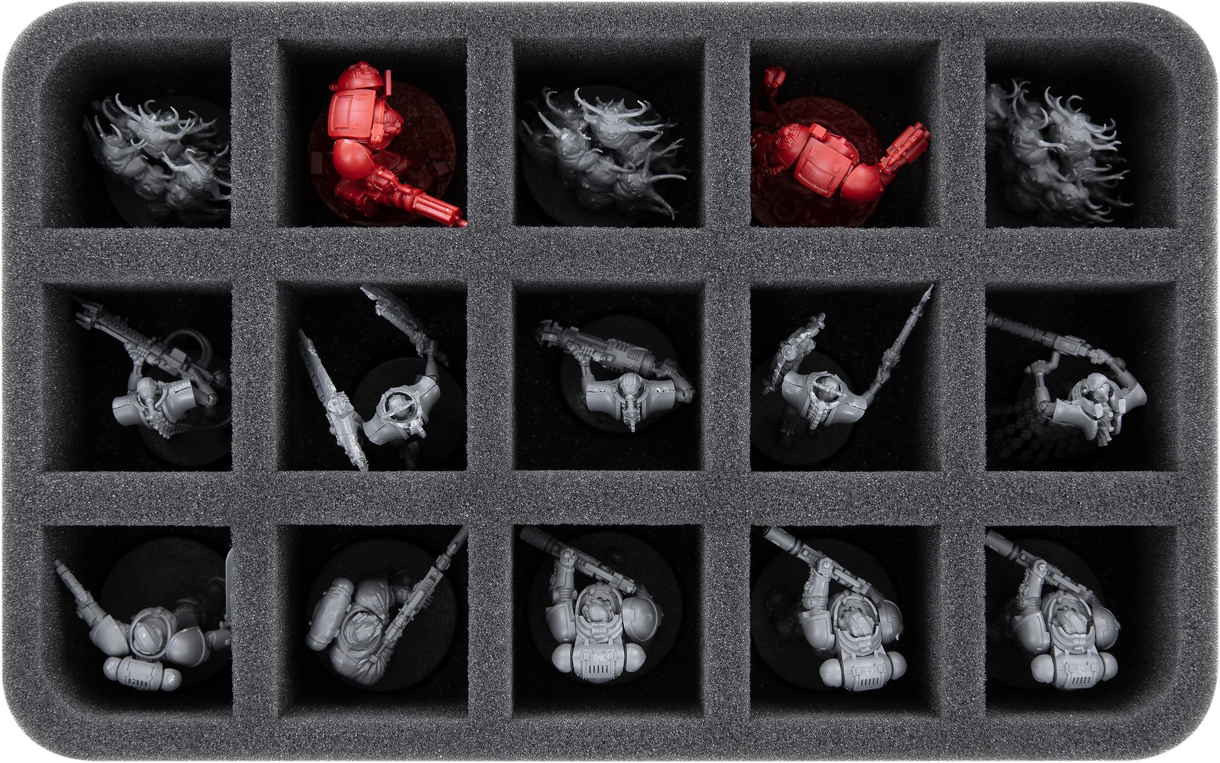- 1 Half-Size foam tray with 15 compartments for e.g. Primaris Eliminators, Primaris Infiltrators, Primaris Lieutenant (HSMFAG060BO)