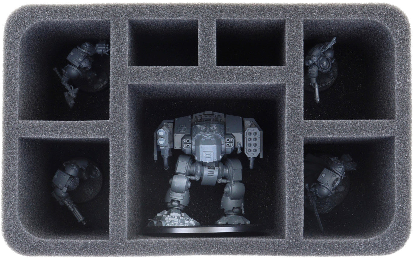 - 1 Half-Size foam tray with 7 compartments for Ballistus Dreadnought + Terminators + Apothecary Biologis + Librarian in Terminator Armor + Captain in Terminator Armor (HSMEME110BO)