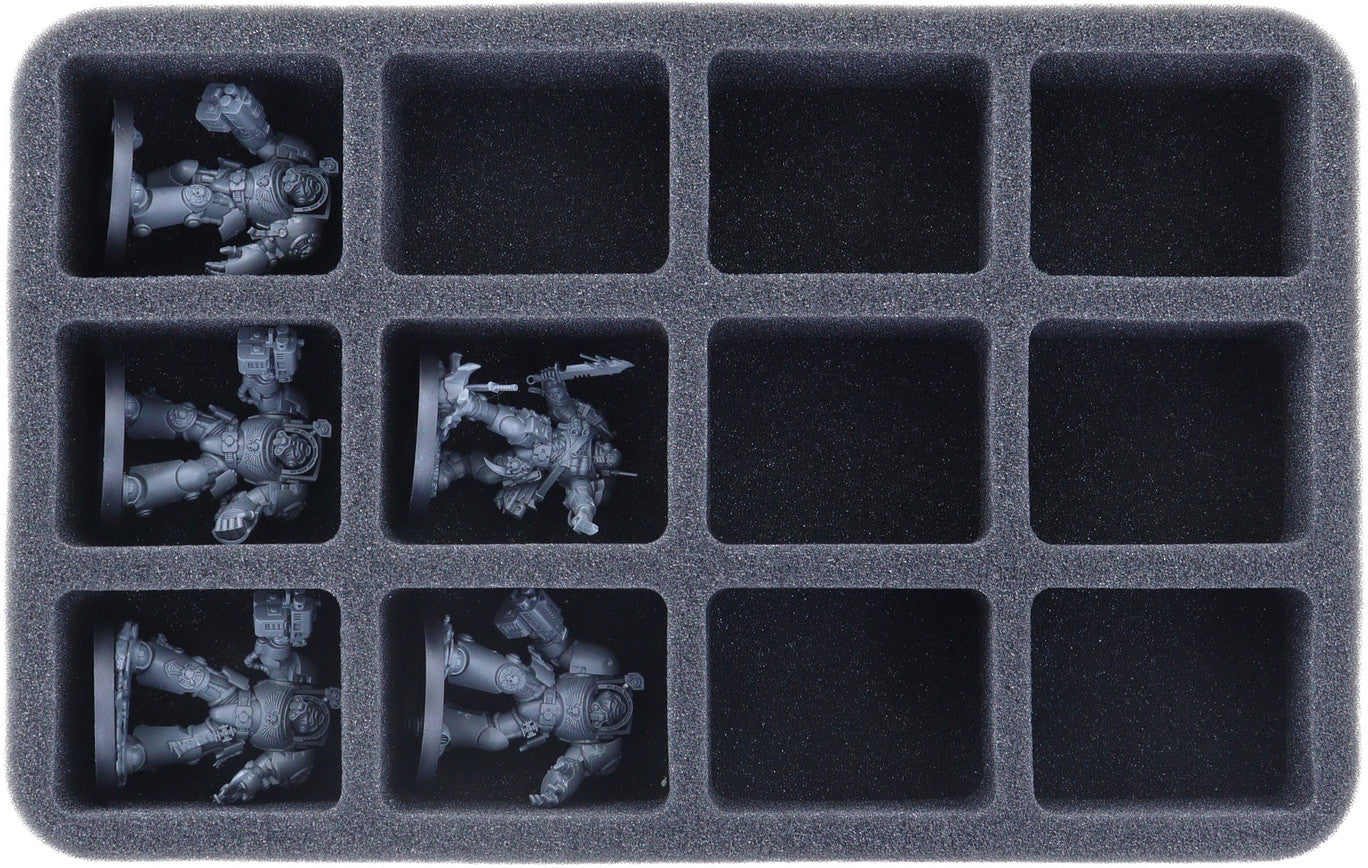 - 1 Half-Size foam tray with 16 compartments for Sternguard Veterans + Infernus Marines (HS050BF05BO)