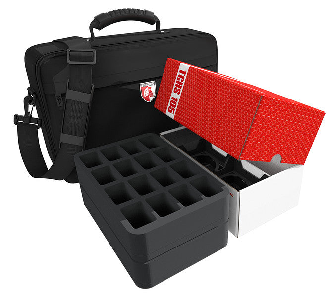 This MEDIUM bag, incl. the Storage Box TCHS105, helps you store your Unmatched figures and small-sized game material neatly and safely. No more worrying about loose parts or damaged figures. High-quality Feldherr foam inserts provide reliable protection for your miniatures, while matching plastic inserts keep your game material neat. Giving you room for up to 32 figures and about 1300 cards.