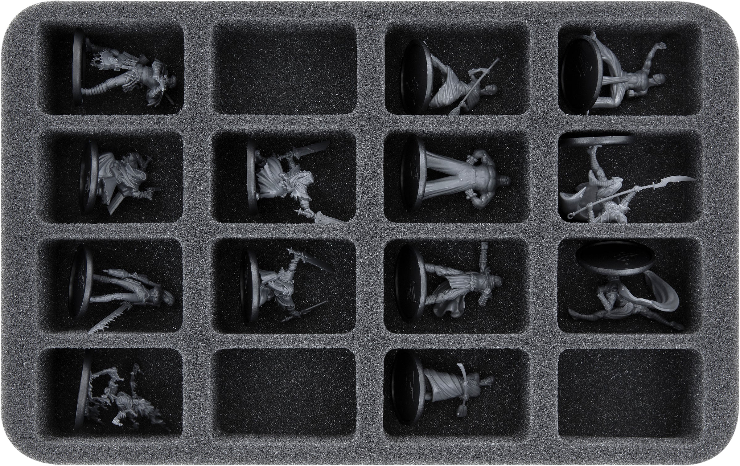 - 1 Half-Size foam tray with 16 compartments for classic 28 mm tabletop and board game miniatures (HS040BF05BO)