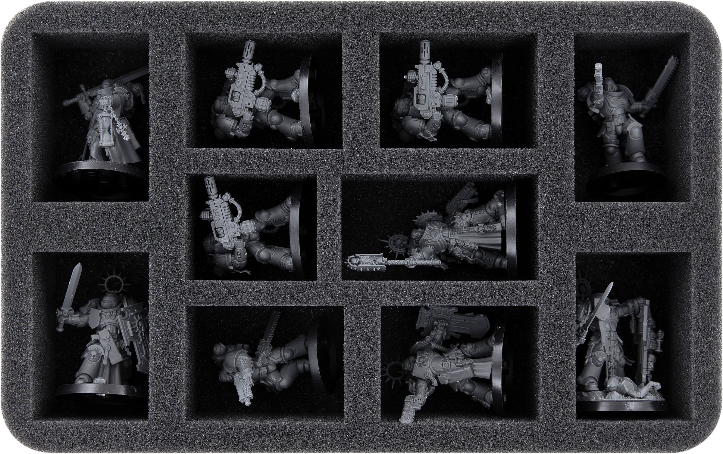 • 1 Half-Size foam tray for 1 Primaris Captain, 5 Assault Intercessors, 1 Highlord, and 3 Canoptek Scarab Swarms (HSLM050BO)