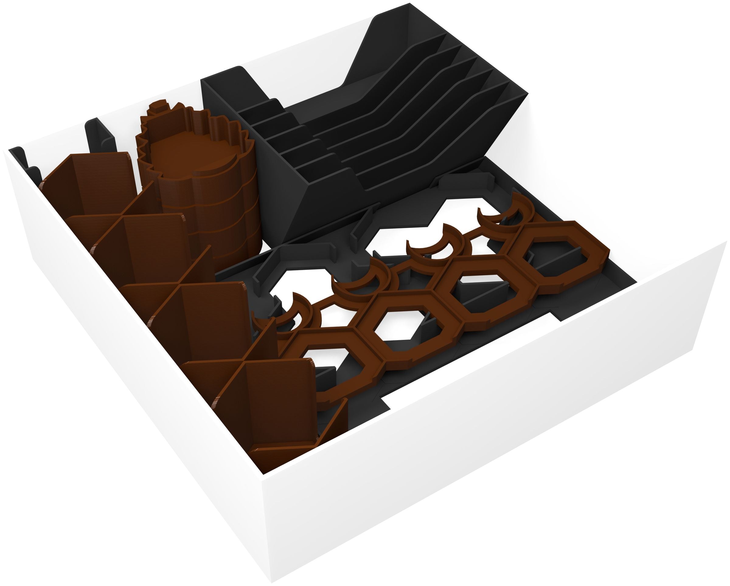 - The trays ensure order in the board game box and can be integrated directly into the game.