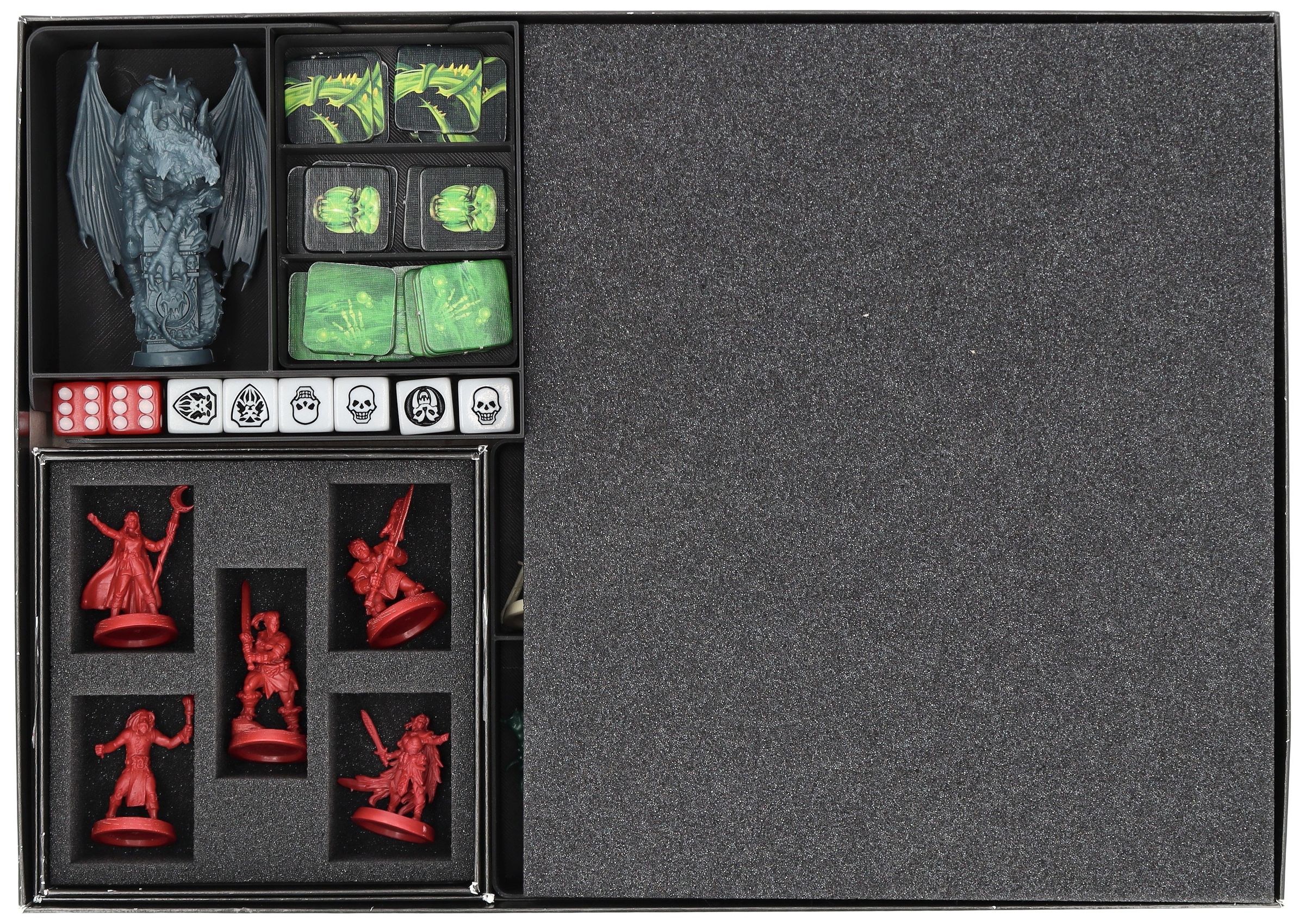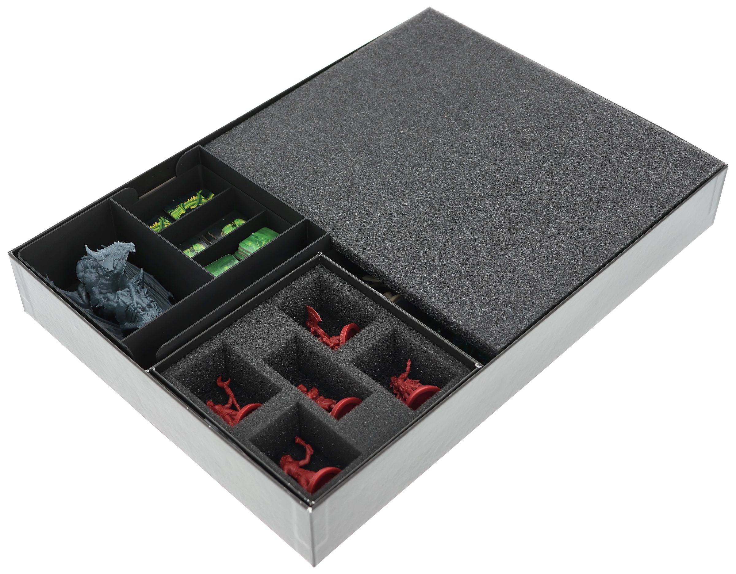 - The inserts replace the original insert and are equipped with individual compartments for miniatures, tokens, dice and cards.