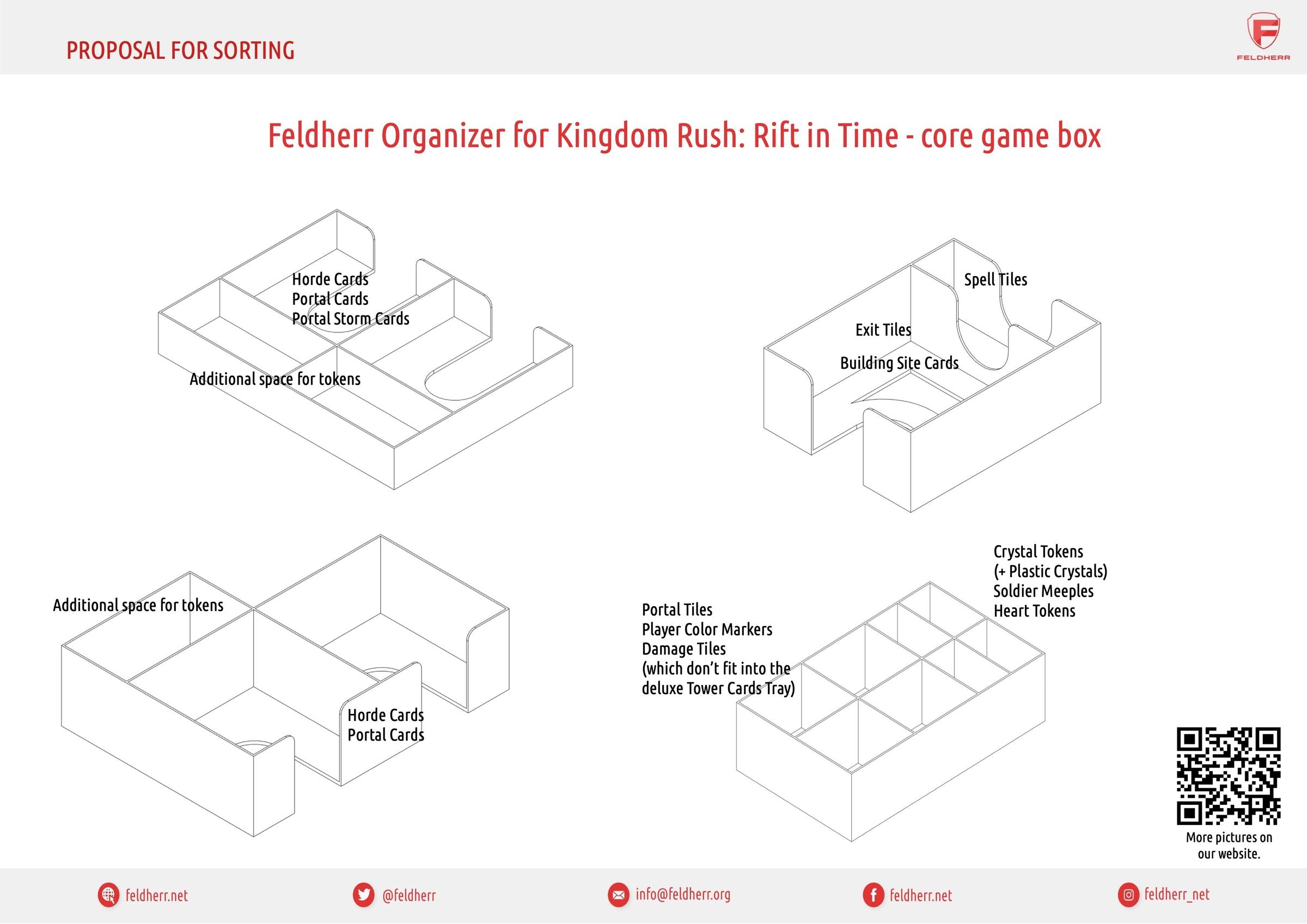 Always at your side: The Feldherr Organizer, suitable for the original board game box of “Kingdom Rush: Rift in Time”. This ensures that the contents of the core game and the deluxe material box fit neatly sorted into the original core game box.