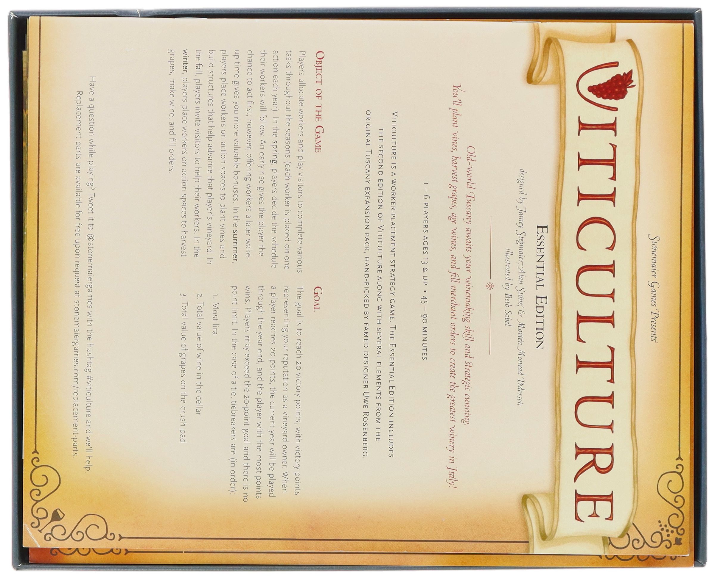 - The plastic Organizer fits exactly into the original Viticulture: Essential Edition core game box (Dimensions of the Organizer: approx. 285 x 210 x 75 mm).