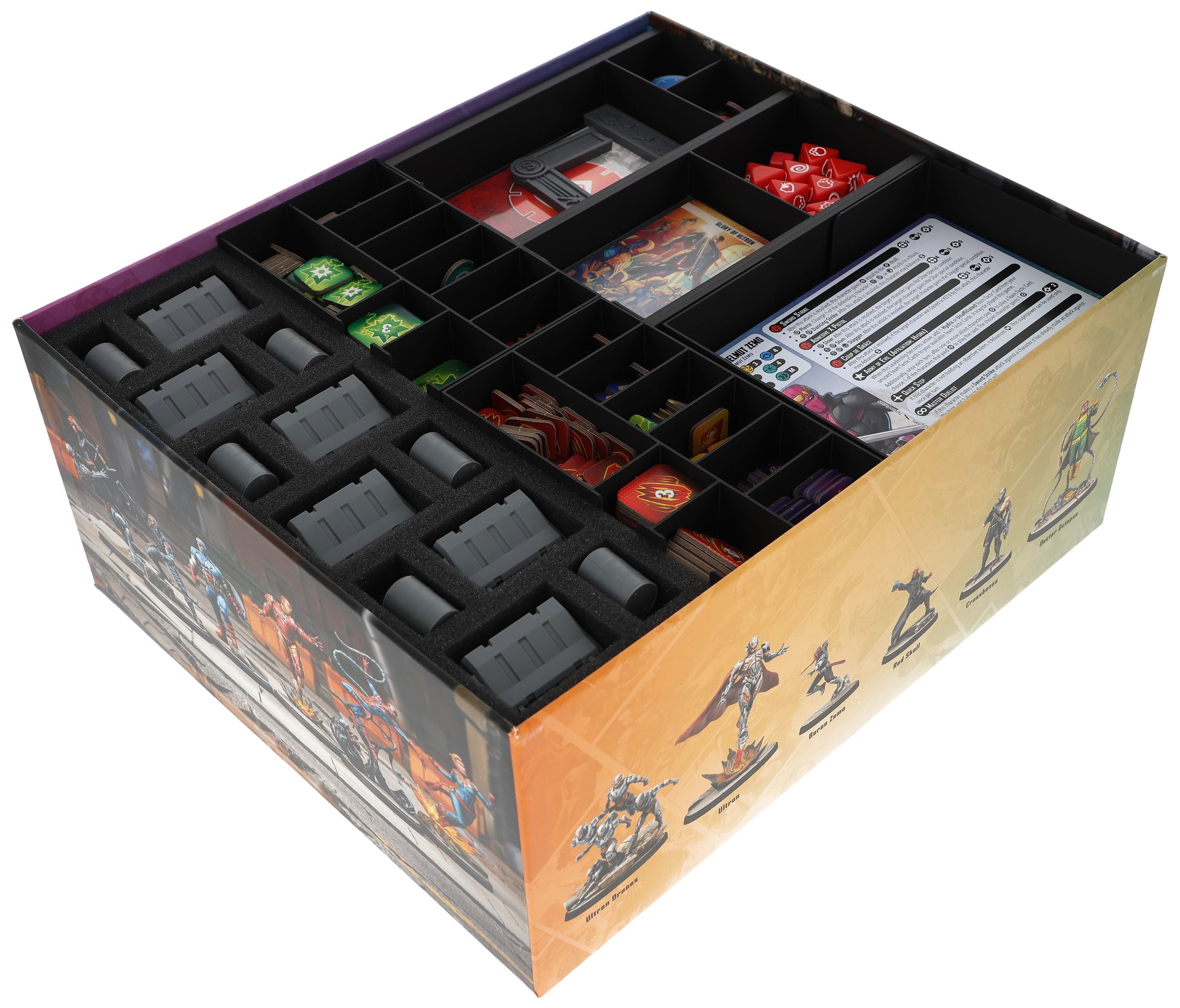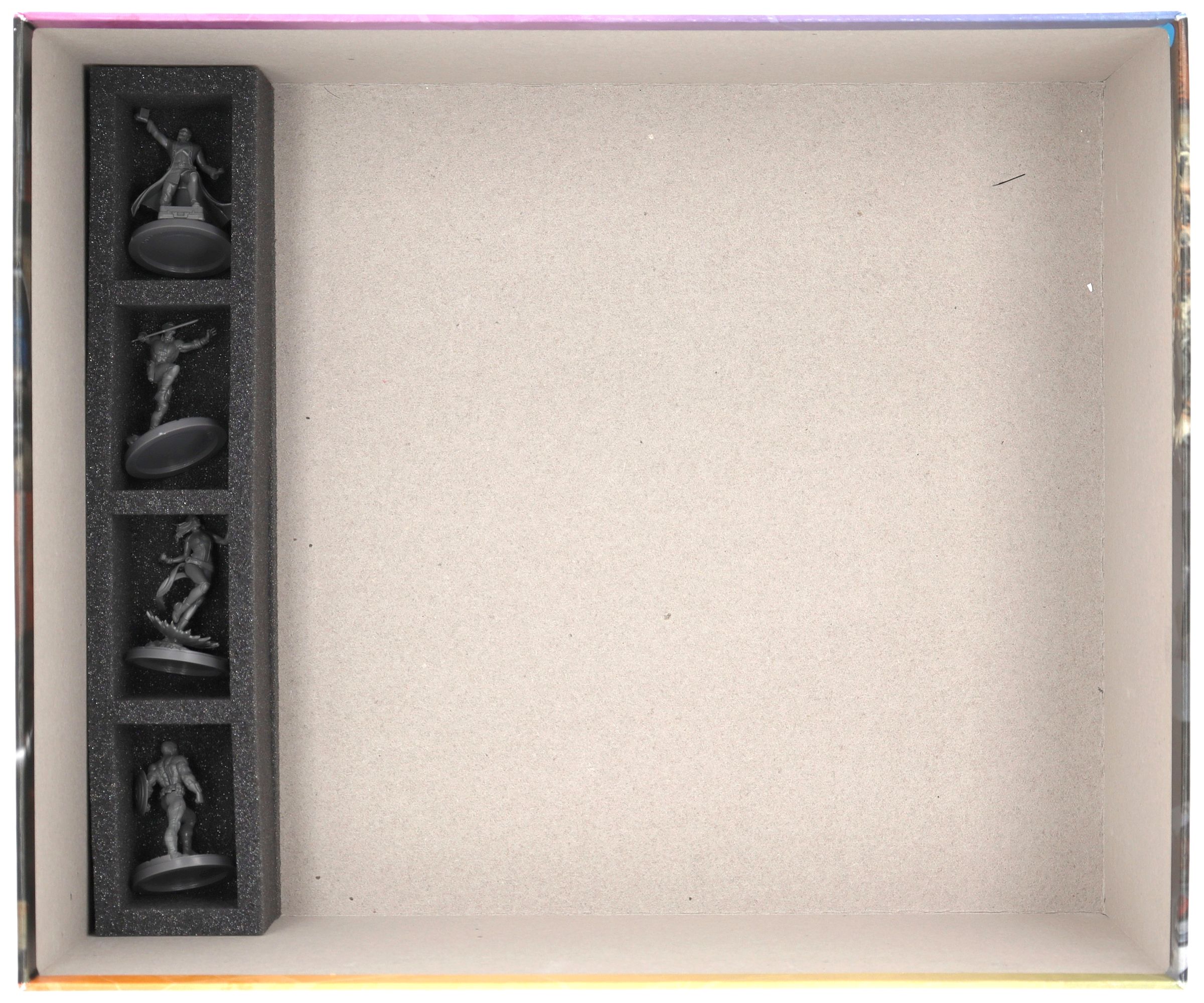 - It provides space for all 13 miniatures and the entire game material from the core game.