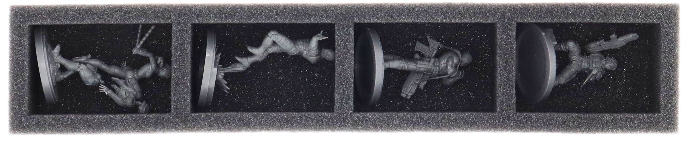 The four foam trays provide your models a safe hideout – each miniature gets its own custom-fit cut compartment. Embedded in soft foam, delicate details like Dr. Octopus’ tentacles or Magneto’s cloak are reliably protected. Painted figures remain free from scratches and abrasion.