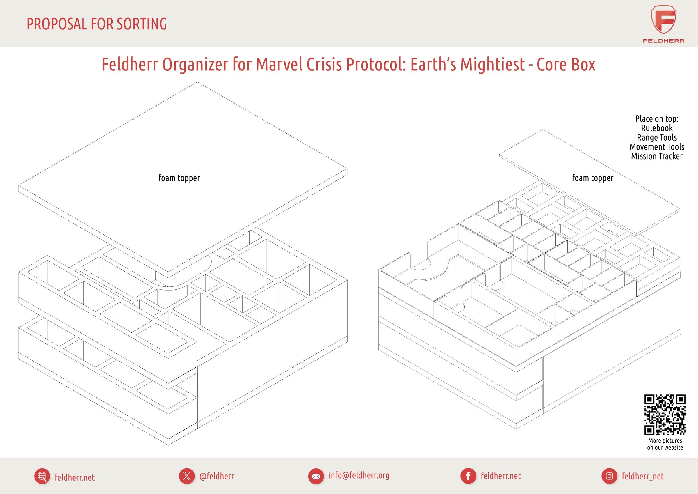 Feldherr foam set + Organizer inserts for Marvel: Crisis Protocol - Earth’s Mightiest Core Set - core game box