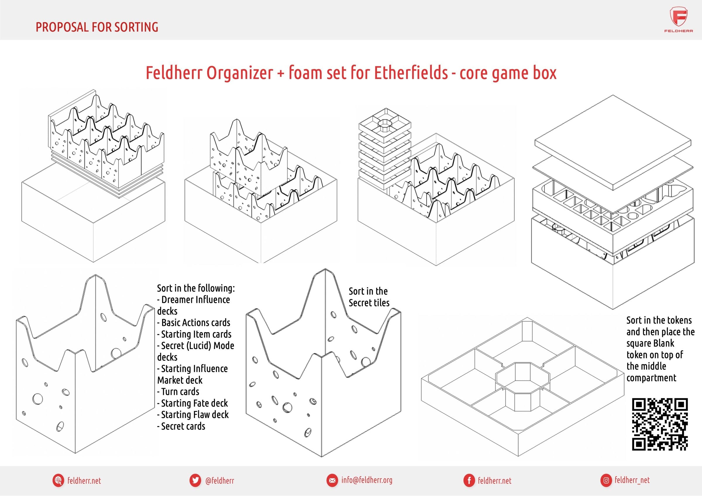 The Etherfields Kickstarter campaign delivered a lot of value for your money. To avoid that the stowage takes nightmarish traits, we support you with the matching Feldherr Organizer Set.