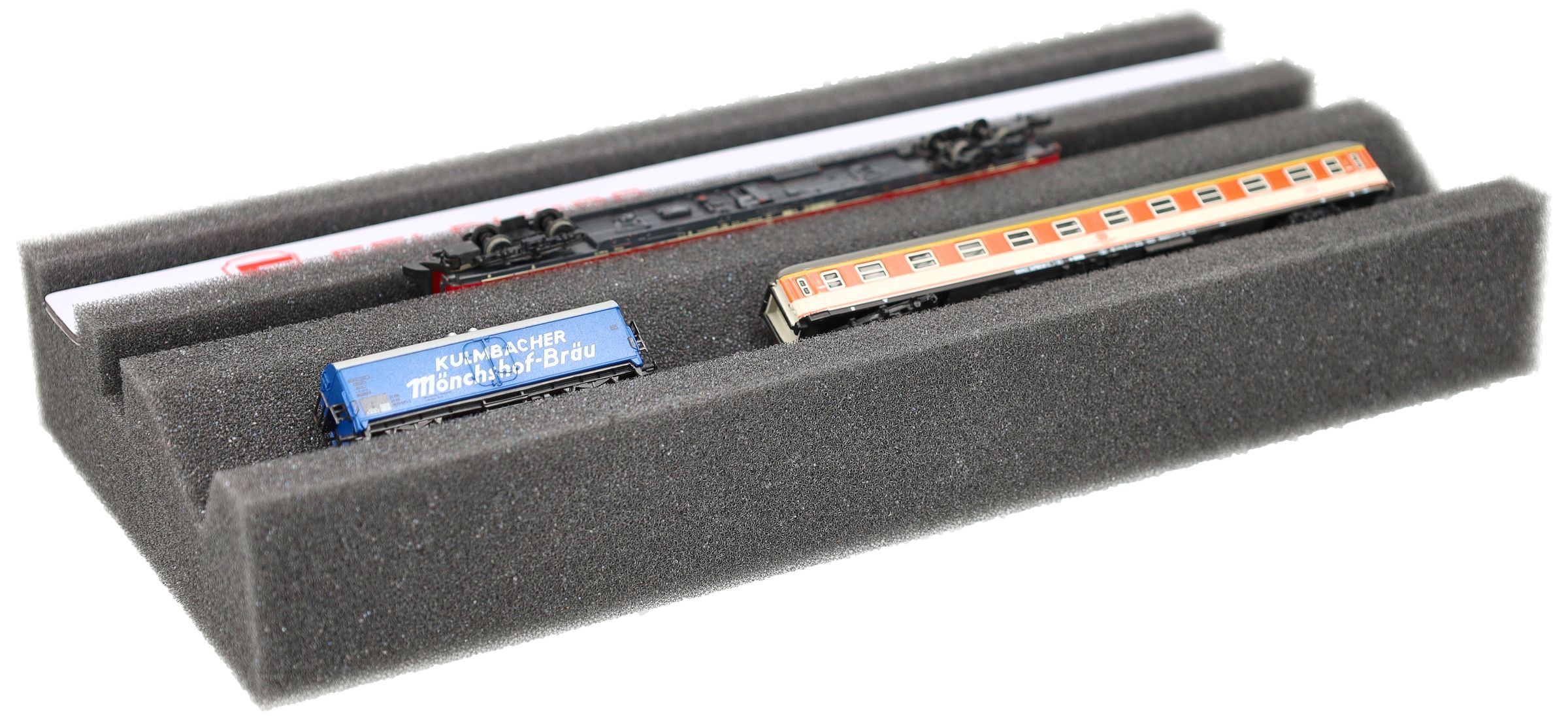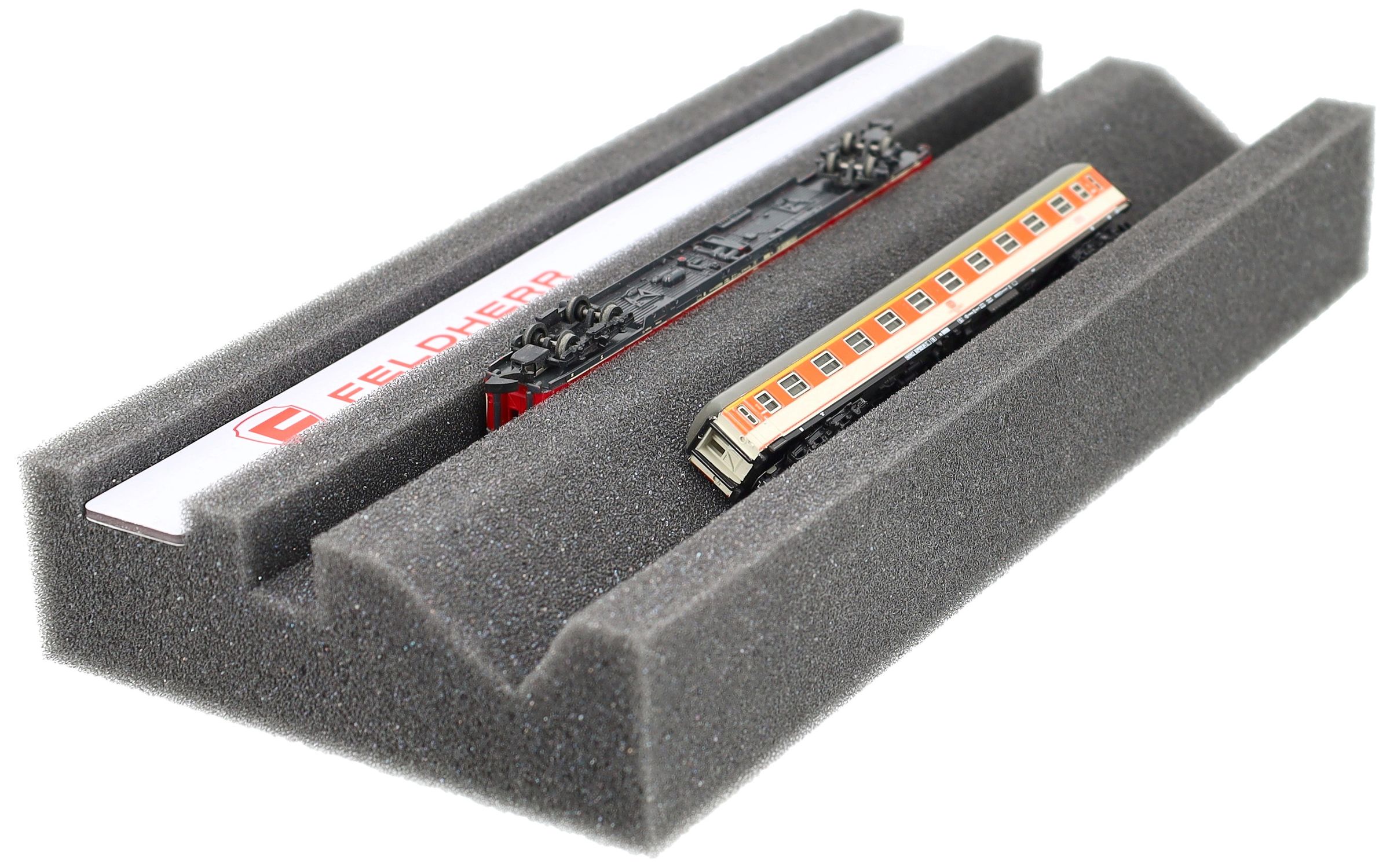 Like all our products, the Z scale loco cradle is manufactured with German precision. The premium P.U. foam used provides an ideal combination of stability and protection for extremely sensitive Z scale model railway components. Unlike improvised solutions, our specially developed Z scale loco cradle protects the most sensitive surfaces of your valuable Z scale models from scratches and other damage.