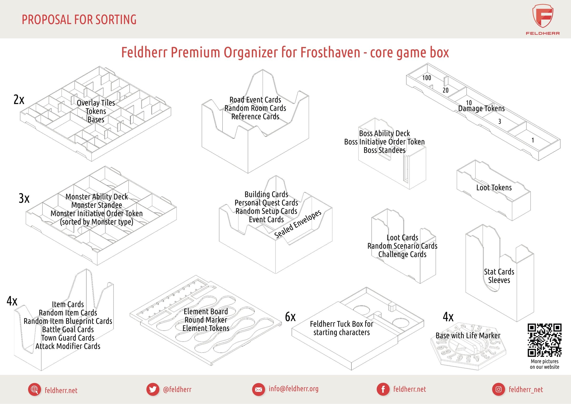 - The Organizer fits exactly into the original Frosthaven core game box.