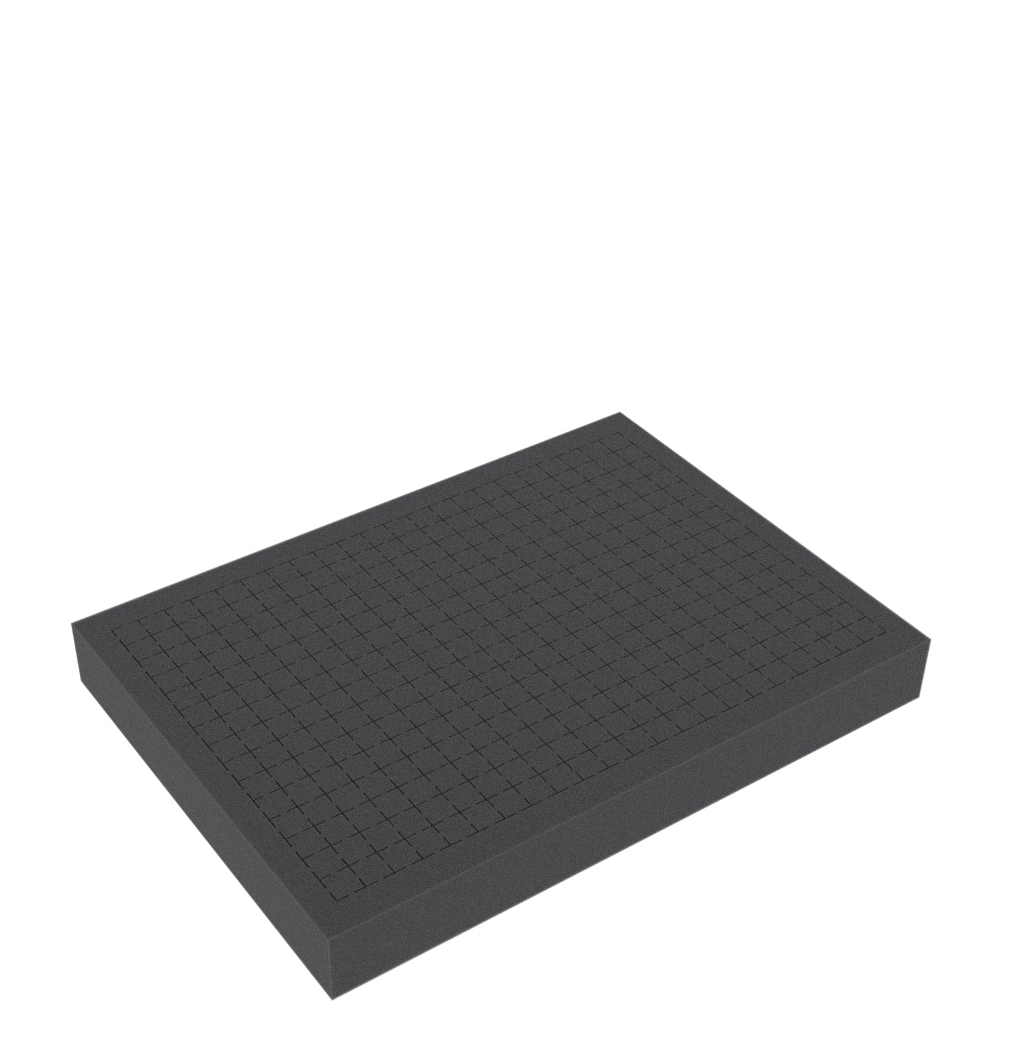 The grid in the foam allows individual adjustment of the foam inserts to all shapes. It is ideally suited as protection for the transport of various industrial goods such as medical equipment, tool components or technical equipment. The foam is perforated with a grid of 15 mm x 15 mm x height of the insert (40 mm) and has a wraparound edge.